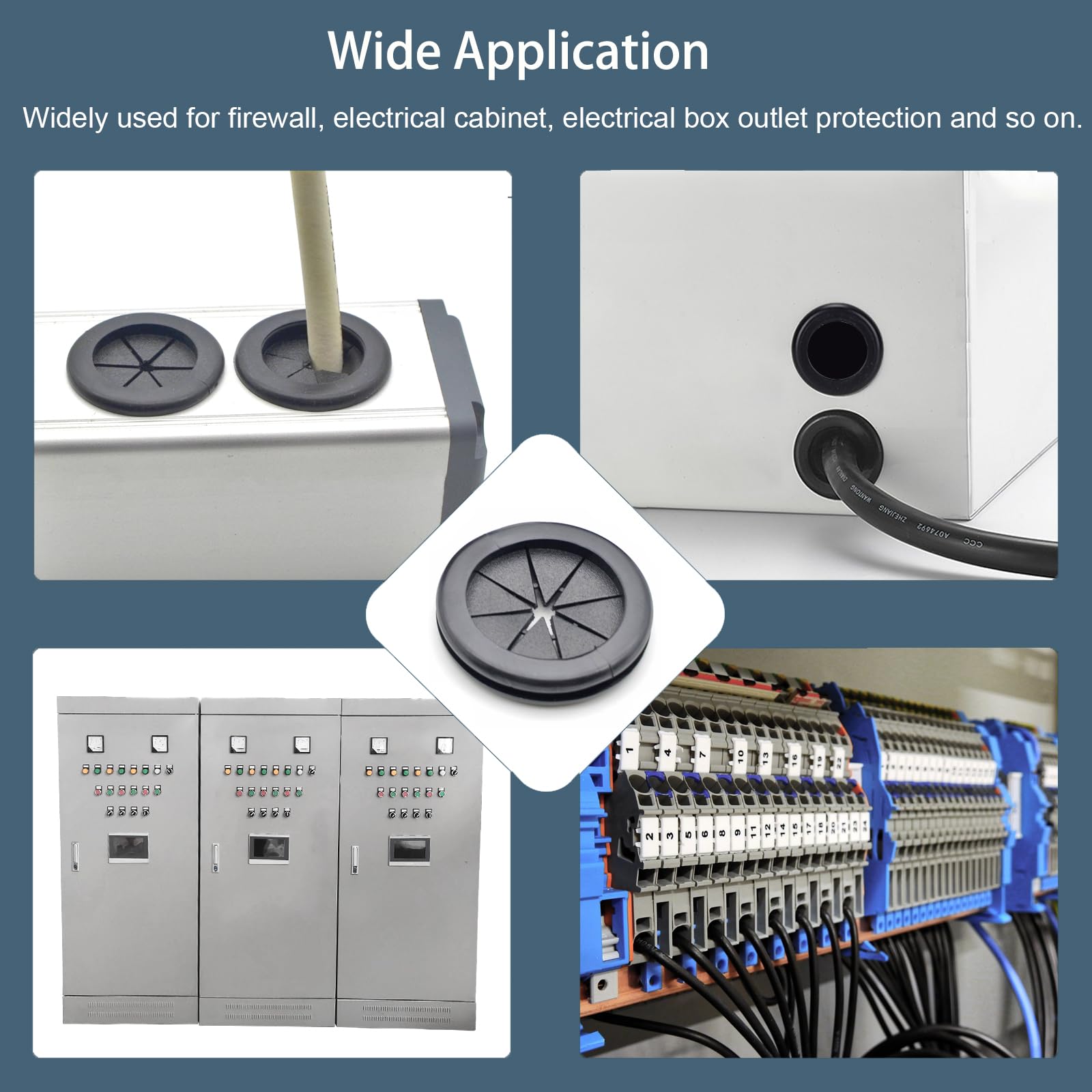 Acts as a guard protects wires and cables from sharp metal edges, allowing wires to safely pass through frames, firewalls, metal sheets and other electrical applications.