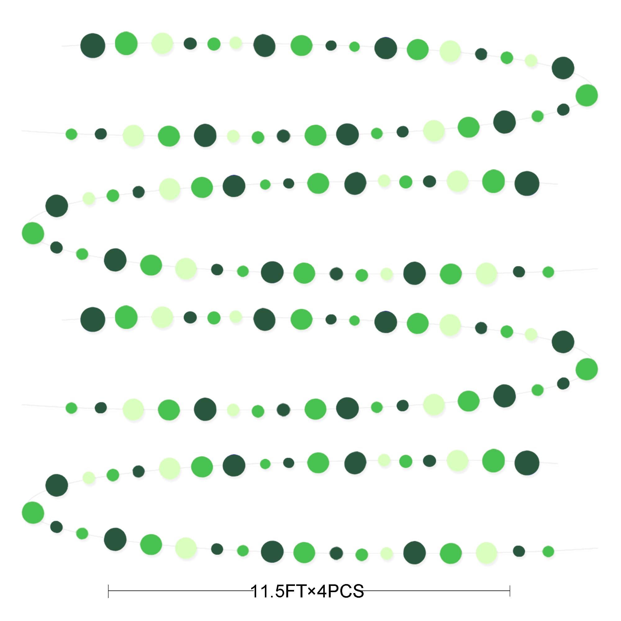 PACKAGE CONTAINS- 4 set of gradient green circle dot party garland banner,each string is 11.5 feet/3.5 meters, Total is 14 meters/46 feet.