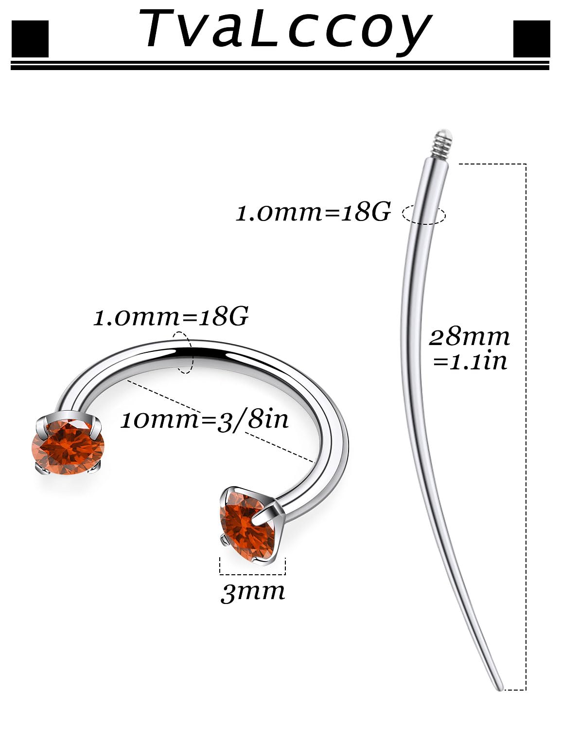 Dimension: All piercing jewelry is 18G=1.0mm, Inner diameter is 3/8in=10mm, Ends Diameter: 3mm.