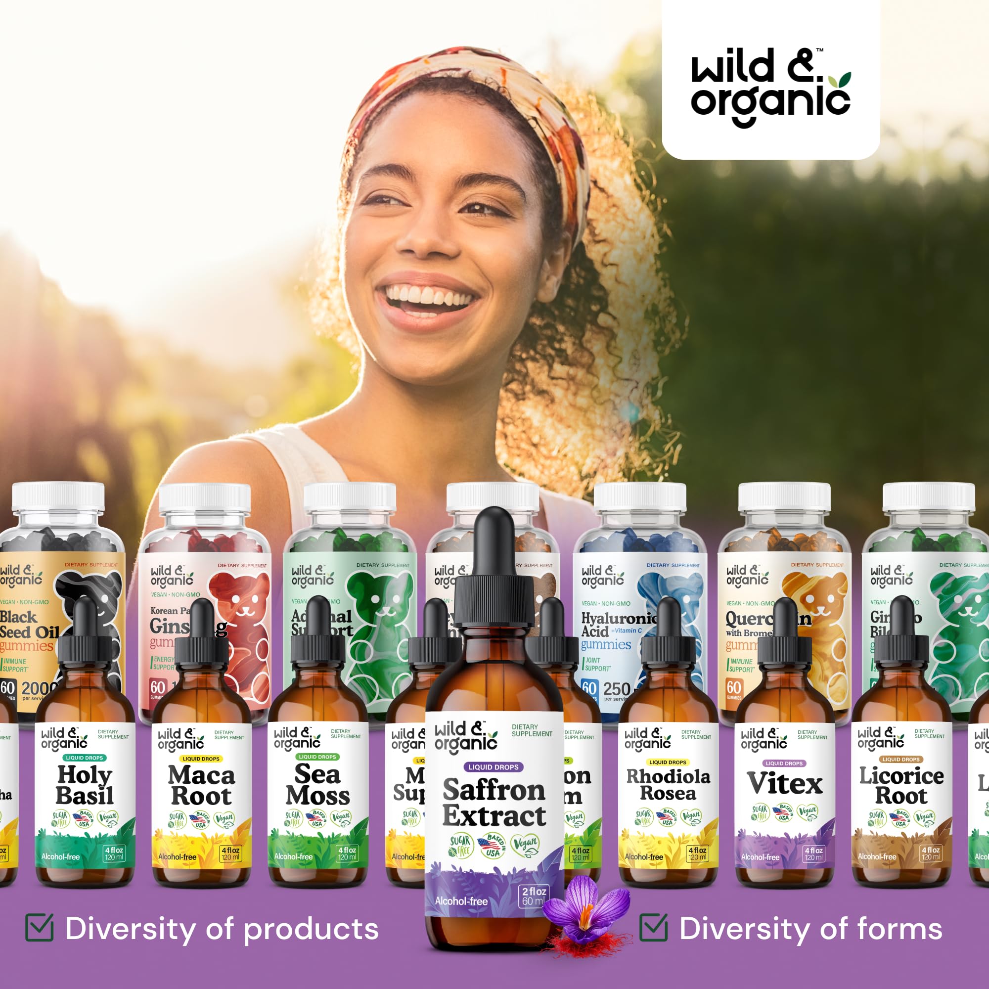 Wild & Organic Saffron Drops - 88.5 mg Saffron Supplement for Mood, Brain, Vision Support - Crocus Sativus Liquid Extract - Vegan, Sugar & Alcohol-Free Tincture - 2 fl oz