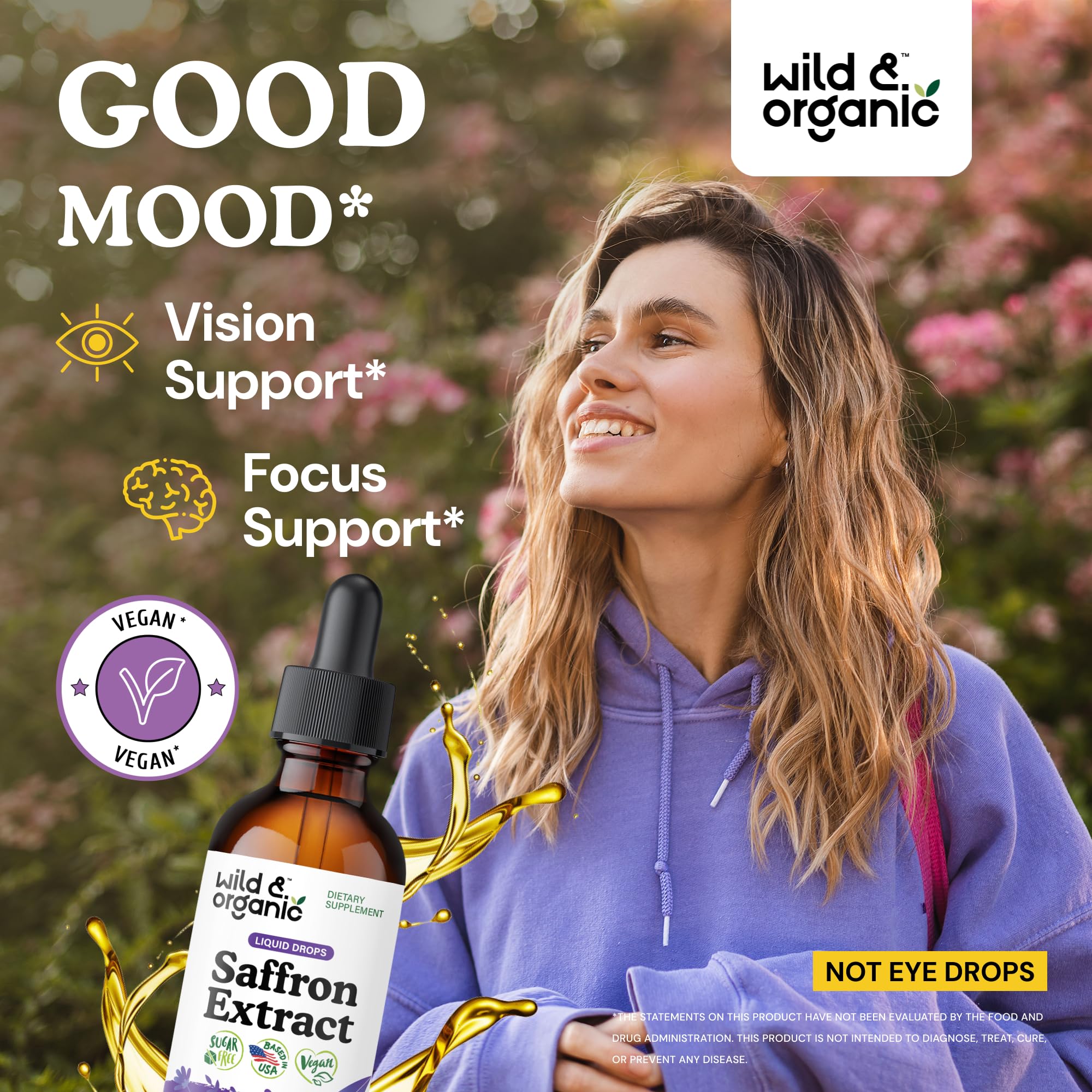 Mood, Brain & Eye Support: Each serving of Wild & Organic saffron tincture contains 88.5 mg of saffron liquid extract for mood, focus support, and vision (not eye drops).
