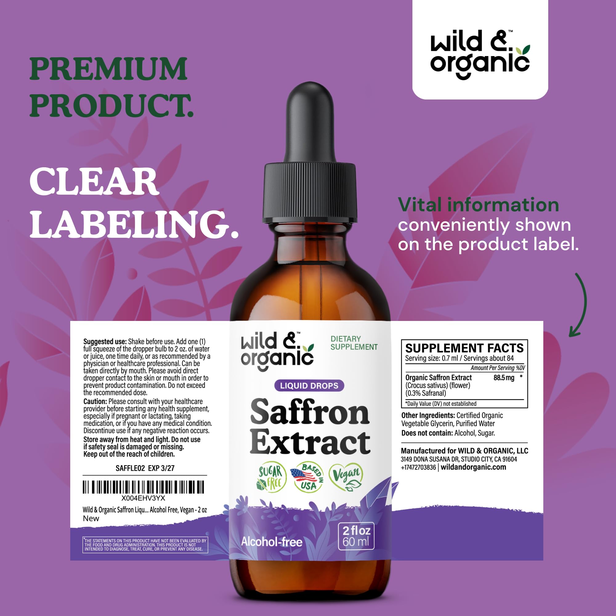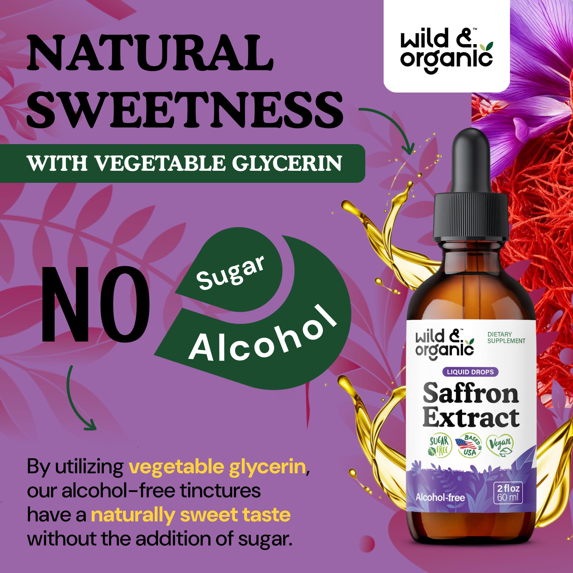 Alcohol-Free: Wild & Organic saffron extract tincture is vegetable glycerin-based, providing an alcohol-free base that is easy on digestion.