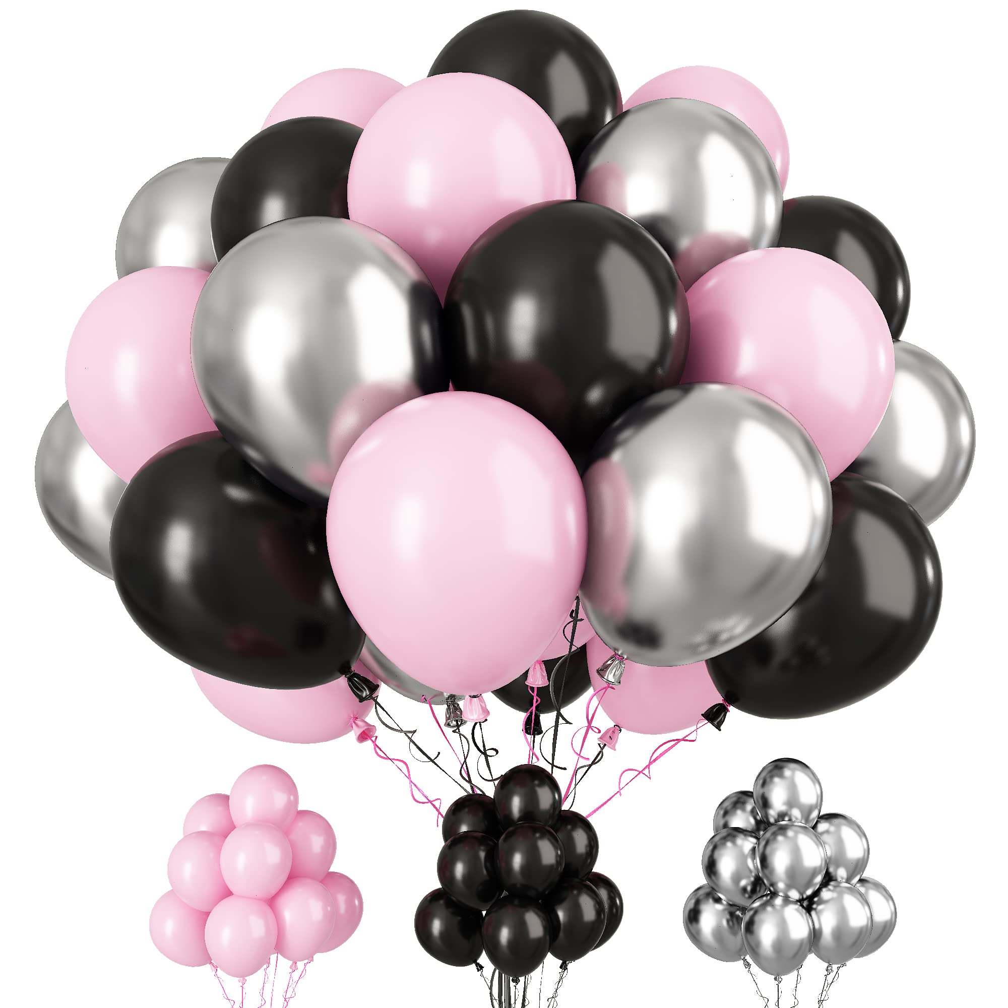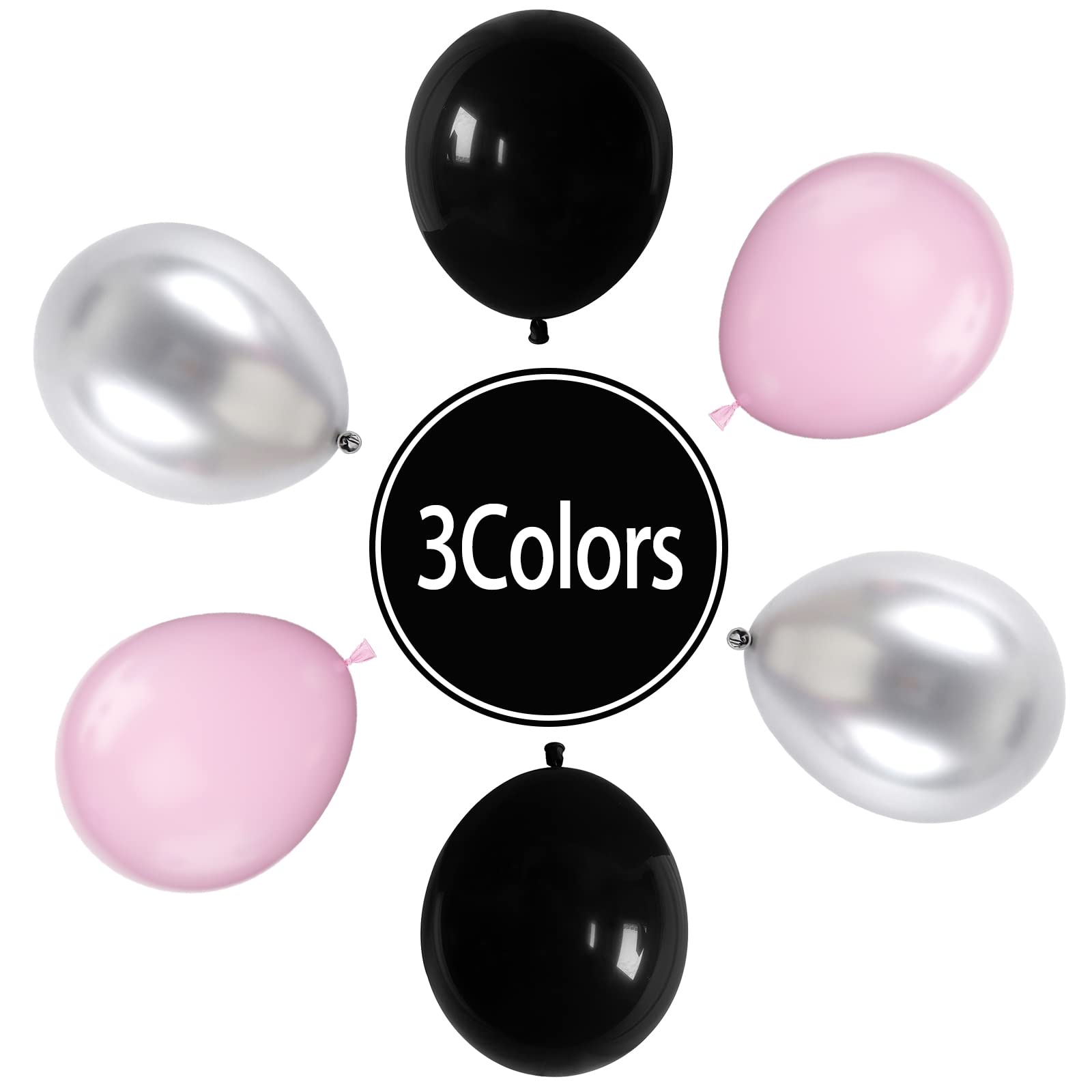 Good Quality Balloons: The black pink silver balloon set is made of good quality latex material, which will stay inflated for a long time, not easy to burst, safe to be used as balloons decorations for party.