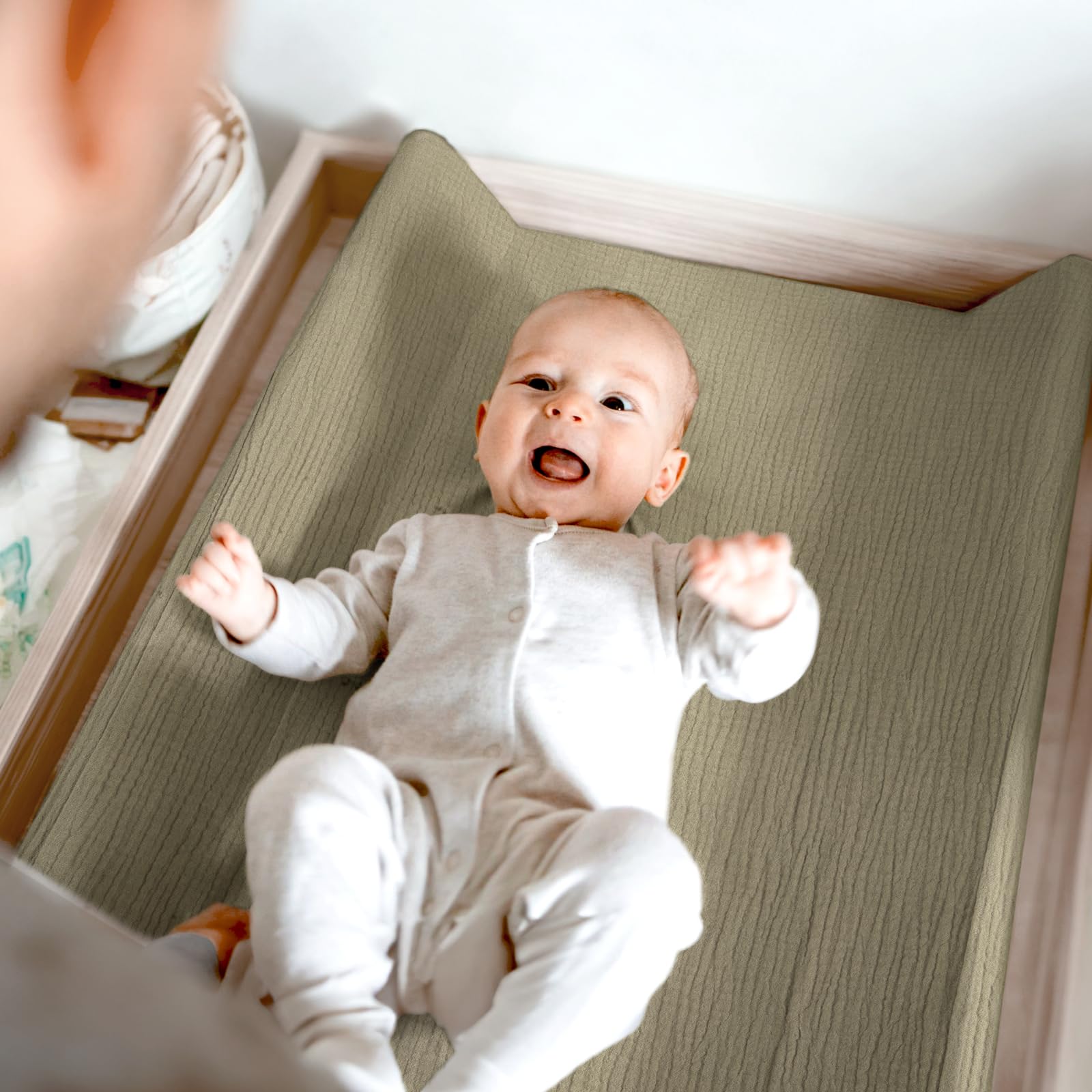 SOFT AND BREATHABLE: Our changing pad covers is made of 100% muslin cotton. The touch is soft and comfortable, which is very suitable for infant sensitive skin. Lightweight and breathable fabric will keep your baby cool and comfortable.