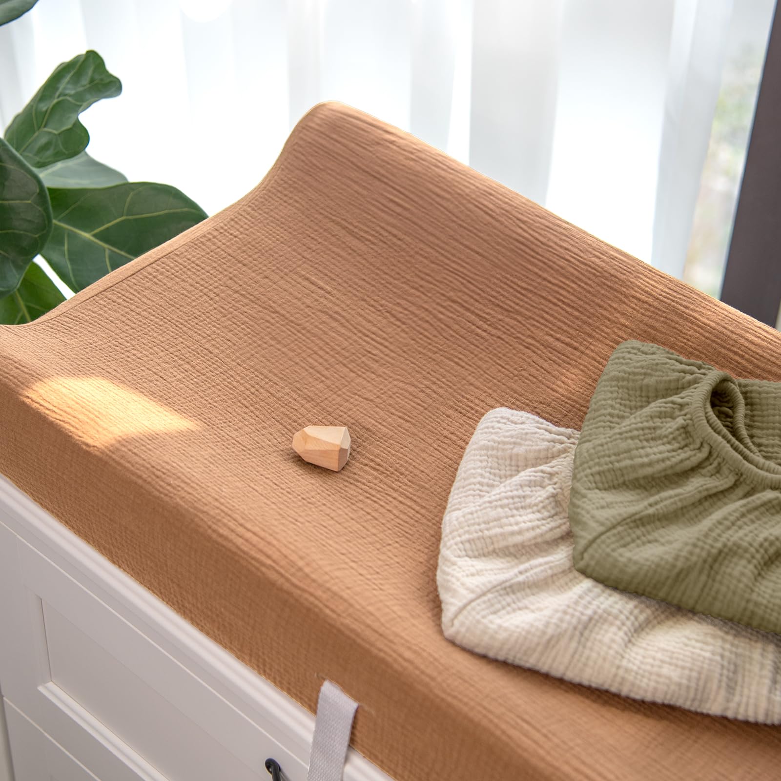 FITS MOST CHANGING PADS: Muslin changing pad covers measures 17" x 33", 7" deep pockets fit most standard size changing pad. Don't worry if this changing pad covers will fit your changing pad.