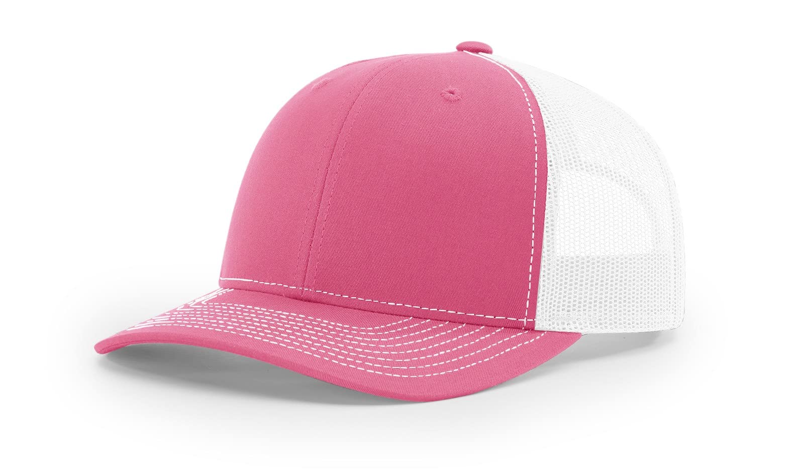 Description Richardson 112 mesh back adjustable truckers caps. Cotton polyester front panels and visor with nylon mesh back panels. Sport-casual shape, buckram fused front panels with pro stitching. Pre-curved pe visor. Adjustable plastic snap back strap.