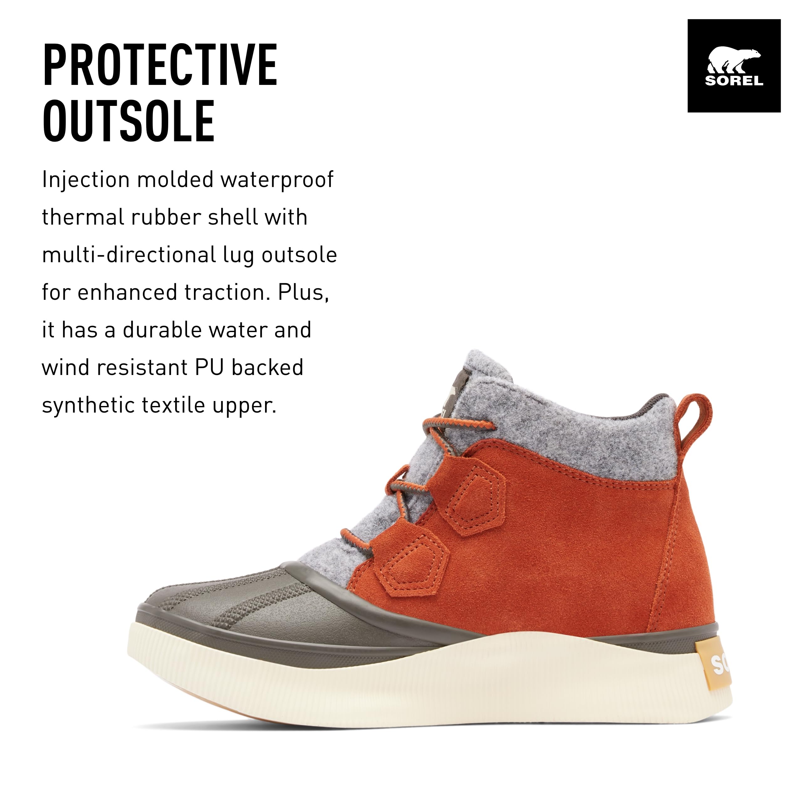Out N About Women's Boot: This women's waterproof boot with laces allows you to adjust the tightness for a secure feel; the SOREL boot features a molded EVERTREAD rubber outsole