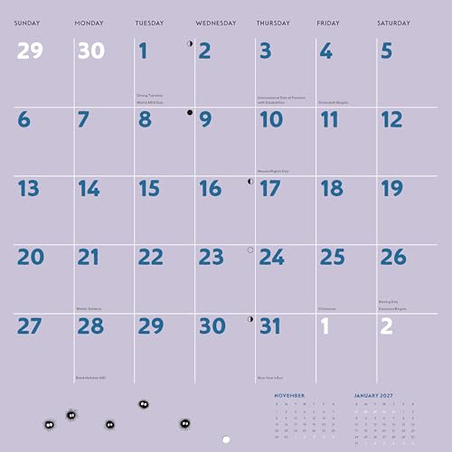 Experience the enchanting world of Studio Ghibli’s My Neighbor Totoro all year long with this 12-month wall calendar featuring final frames from the beloved film. With colorful artwork of key characters and iconic scenes throughout, this calendar is a wonderful way to stay organized and inspired year-round. Perfect for Studio Ghibli fans and animation enthusiasts of all ages. 24-page 12 x 12-inch month-by-month calendar © 1988 Hayao Miyazaki/Studio Ghibli BEAUTIFUL HAND-DRAWN ARTWORK: Includes 13 final frames for January-December 2026, plus September-December 2025 at-a-glance. GREAT GIFT: This calendar is part of an officially licensed line with Japanese animation giant Studio Ghibli. Fans of Hayao Miyazaki and Studio Ghibli movies will love this wall calendar. A thoughtful gift for creatives, animation enthusiasts, collectors, and fans of Japanese art, stationery, and pop culture. BELOVED STUDIO WITH MASSIVE FAN BASE WORLDWIDE: The Ghibli Museum, Mitaka and Ghibli Park are popular destinations in Japan. The studio won the Academy Award® for Best Animated Feature for Spirited Away and The Boy and the Heron and earned Academy Award® nominations for Howl’s Moving Castle, The Wind Rises, The Tale of The Princess Kaguya, When Marnie Was There, and The Red Turtle. PLASTIC-FREE MATERIALS: Printed on FSC-certified paper. 100% plastic-free packaging and product! Perfect for: Studio Ghibli fans of all ages My Neighbor Totoro fans Animation enthusiasts Back-to-school and office use Coworker present or student gift Collectors of Japanese art, stationery, and pop culture