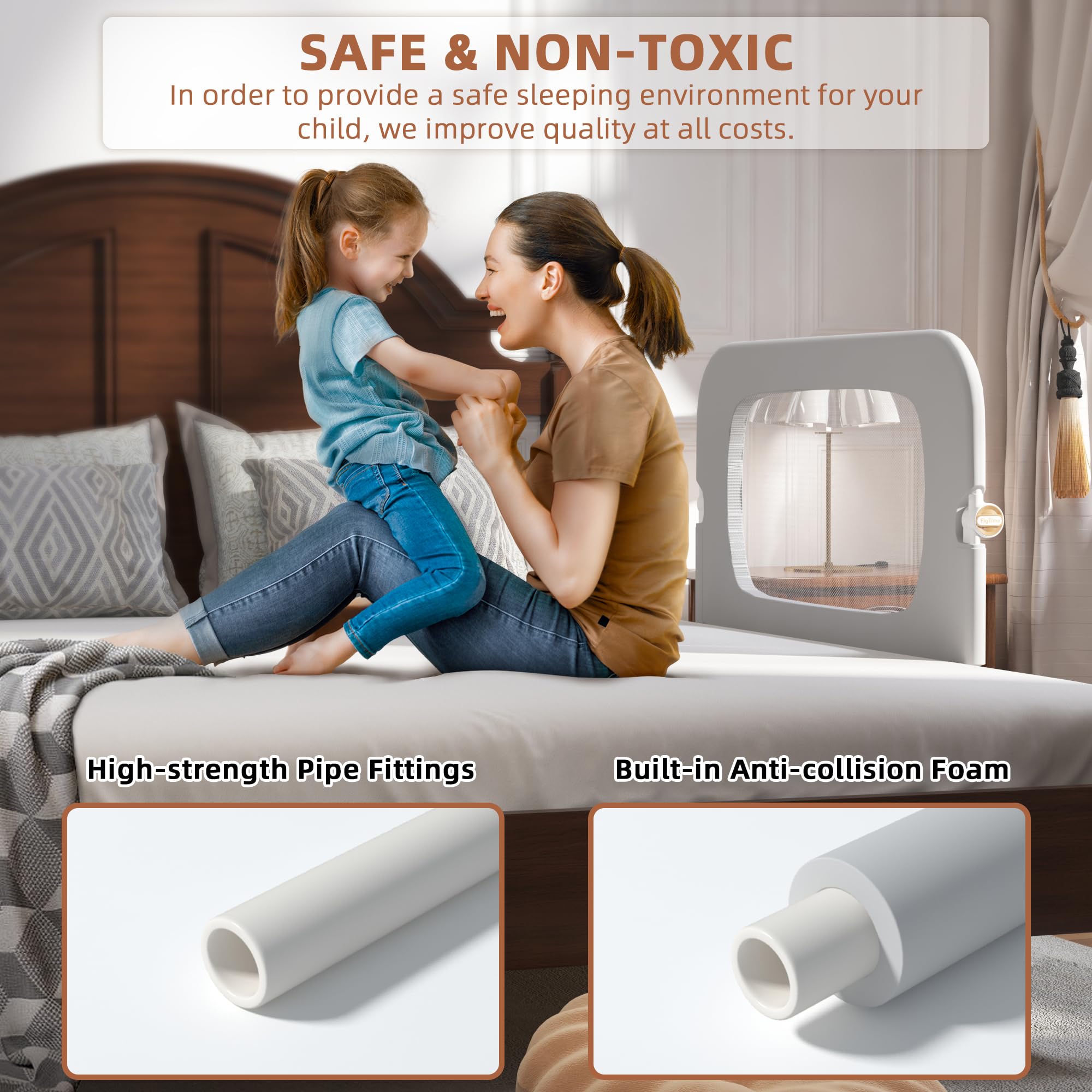【BUILT-IN ANTI-COLLISION FOAM】Our bed guardrail pipes are wrapped with a layer of anti-collision foam, which is essential for active children who often run around, so as to avoid unintentional collisions. The removable cloth cover of the bed guardrail uses durable skin-friendly fabric, providing a comfortable and soft touch for children. Your child deserves the best bed rail guard, and everything we do is only to get the recognition of every family.