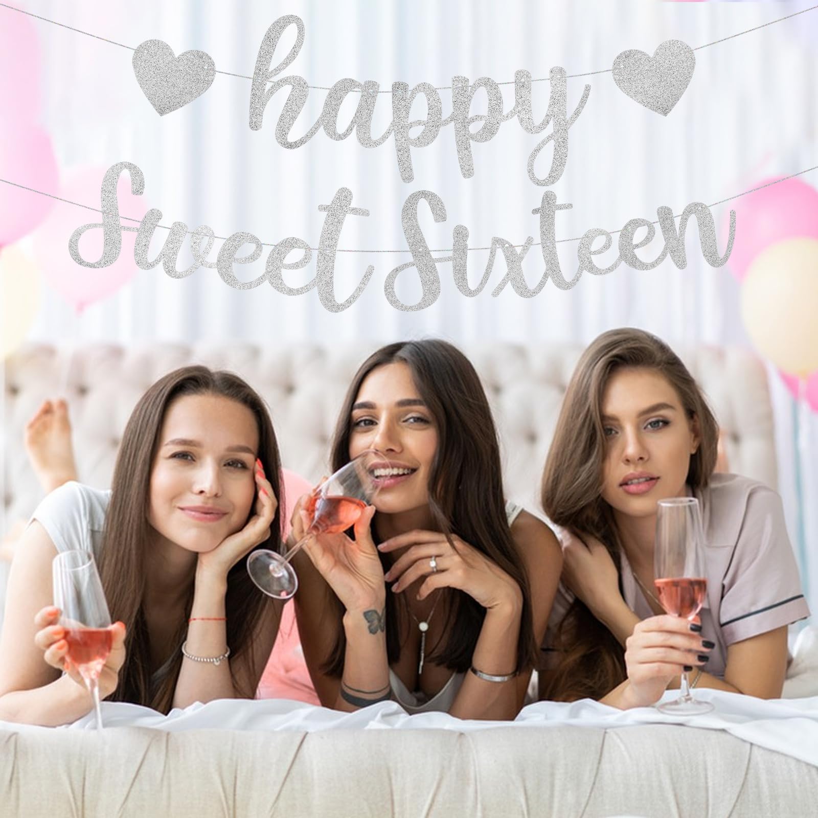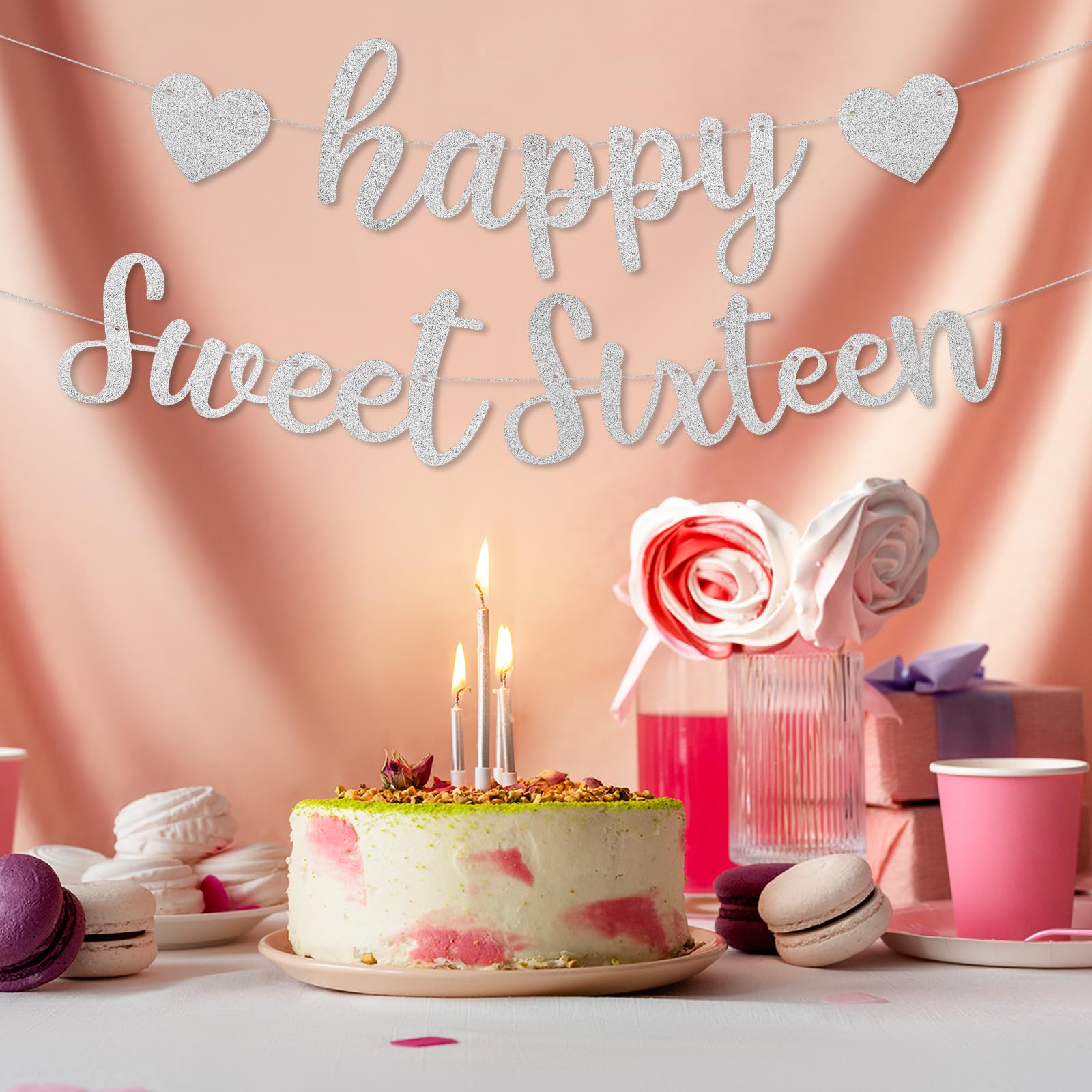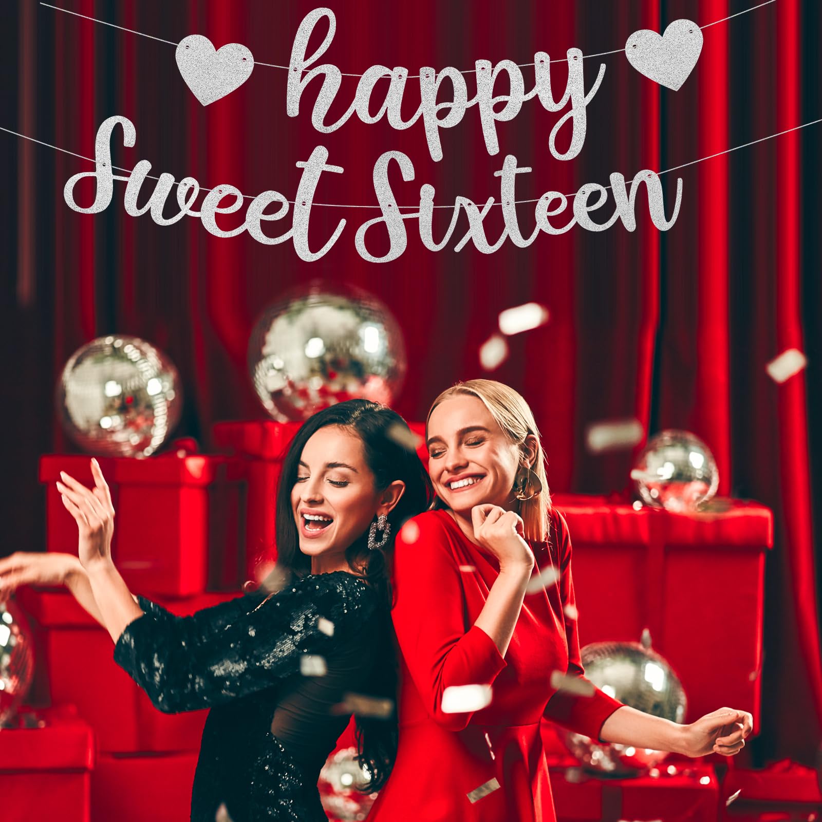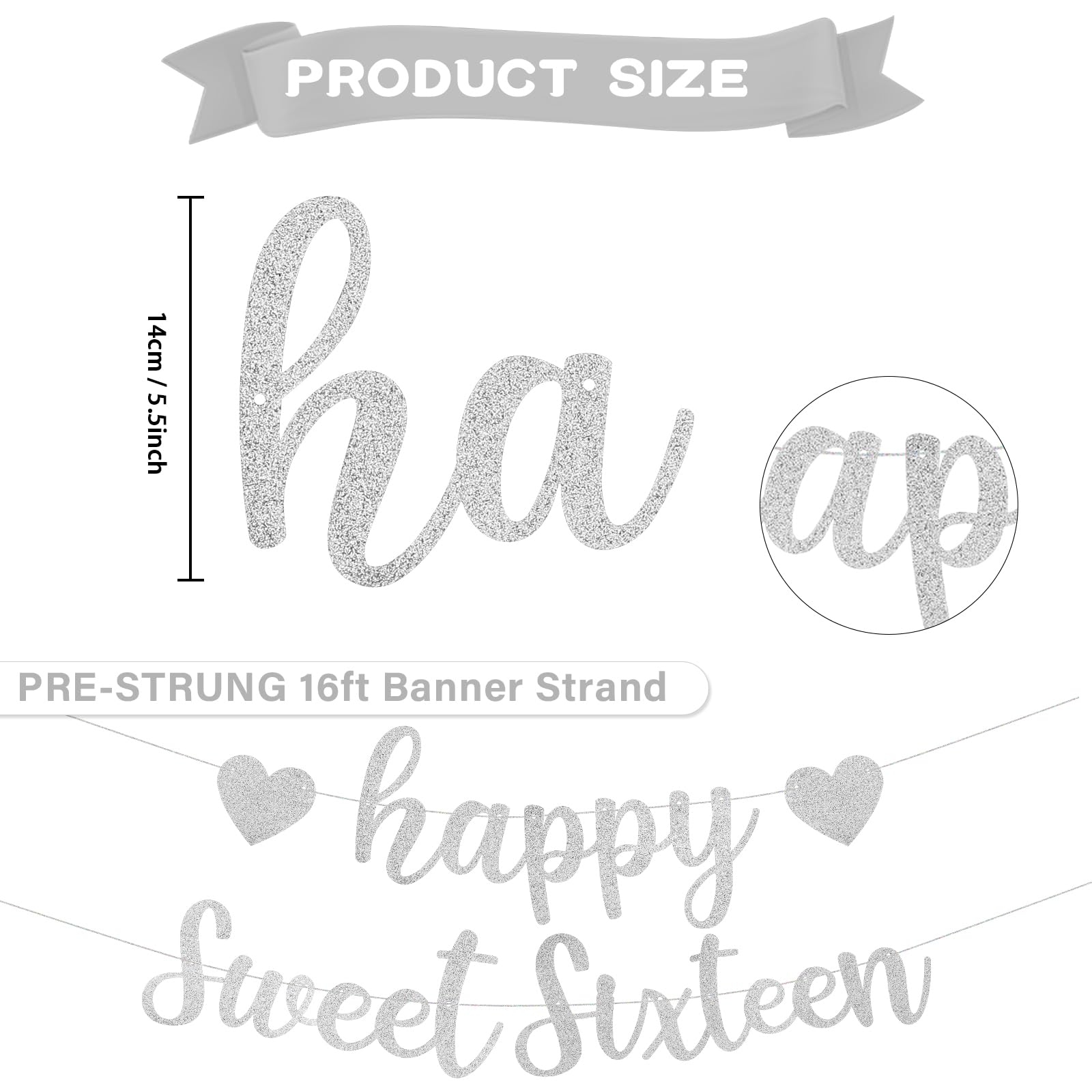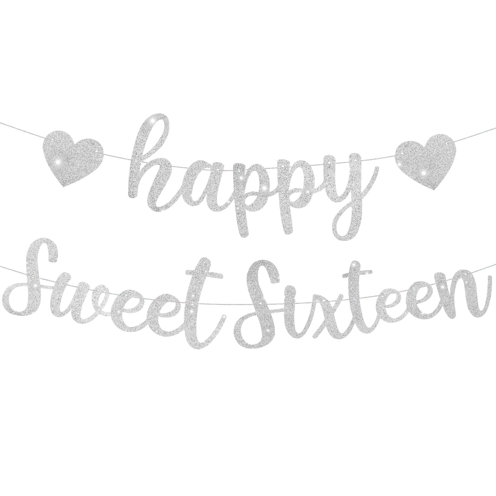 Materials: Happy Sweet 16th birthday sign made of cardboard, decorated with clear letter, reusable for your next party. no shedding glitter sets us apart from other birthday decorations for girl and will set your birthday celebration apart. This sweet 16 banner for girls work for any event space,They are very durable and can be reused. ou can easily add them to mantels, banisters, windows, dessert tables even use as a photo backdrop.