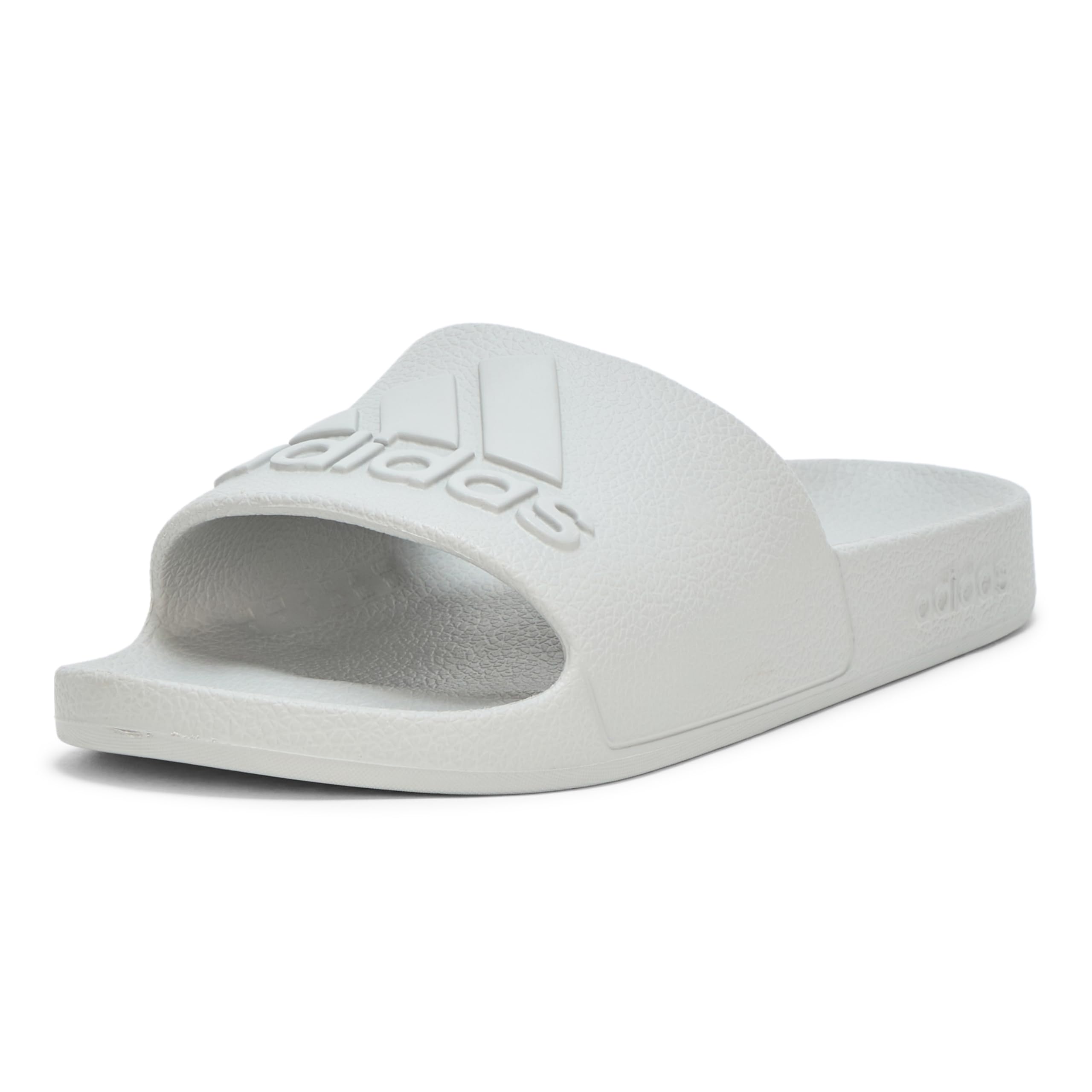 Description These Adilette Aqua Slides bring welcome comfort to tired feet. They have a one-piece molded EVA upper and a plush Cloudfoam footbed. Hit the shower in adidas 3-Stripes.