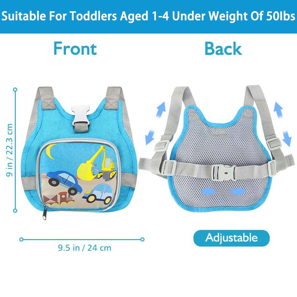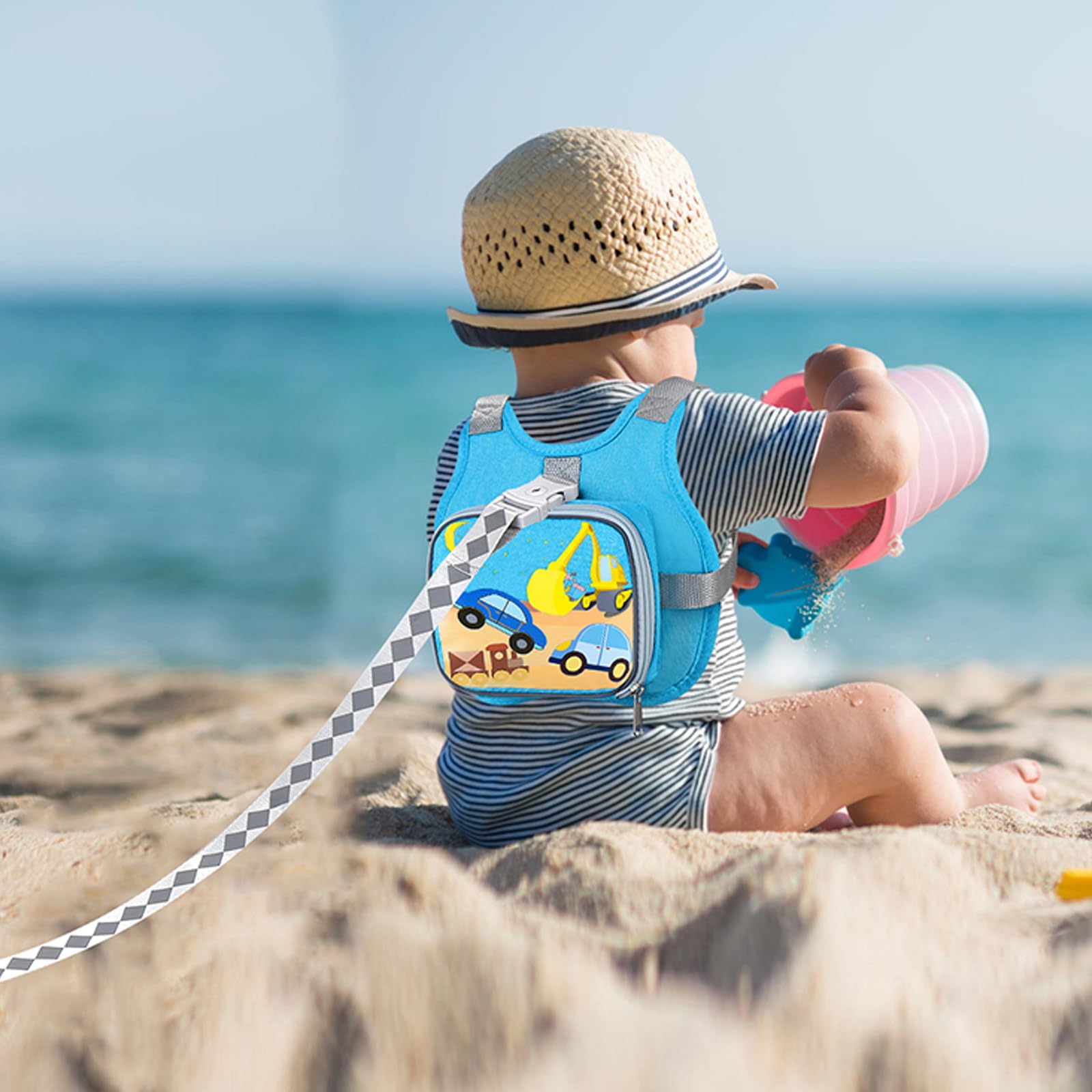 Adorable & Comfortable: The baby harness with lovely cars and excavator patterns that your child will be very glad to wear. It made of cotton material and mesh, soft and safety, The breathable mesh cloth on the back is highly increasing the comfort.