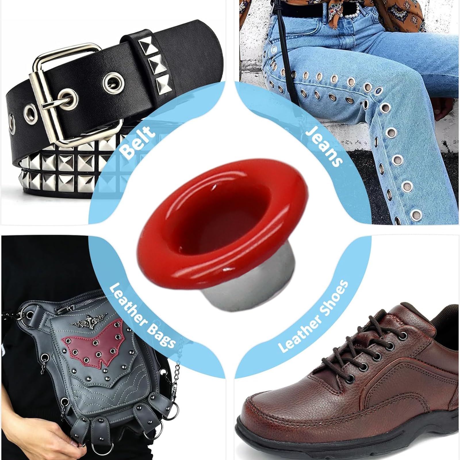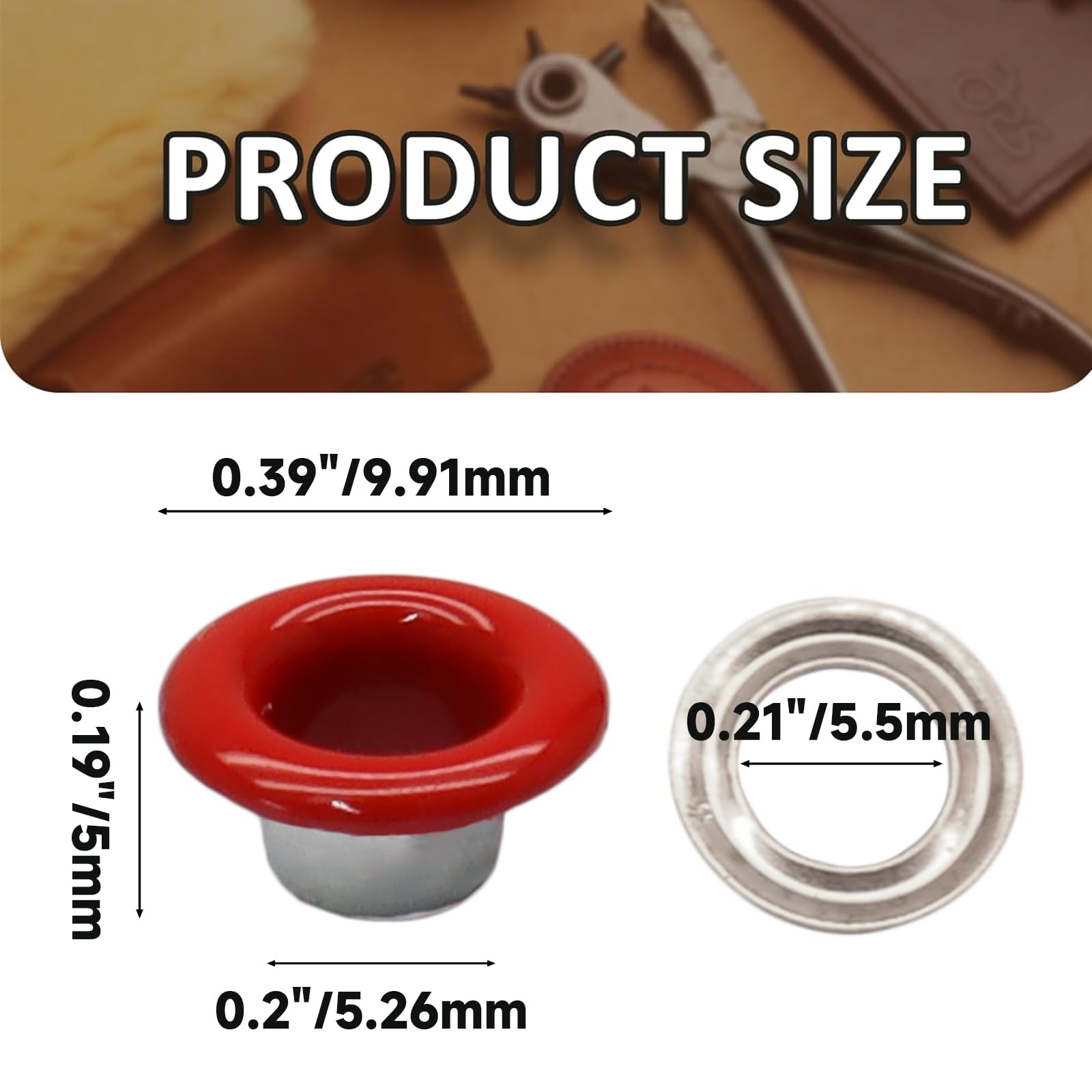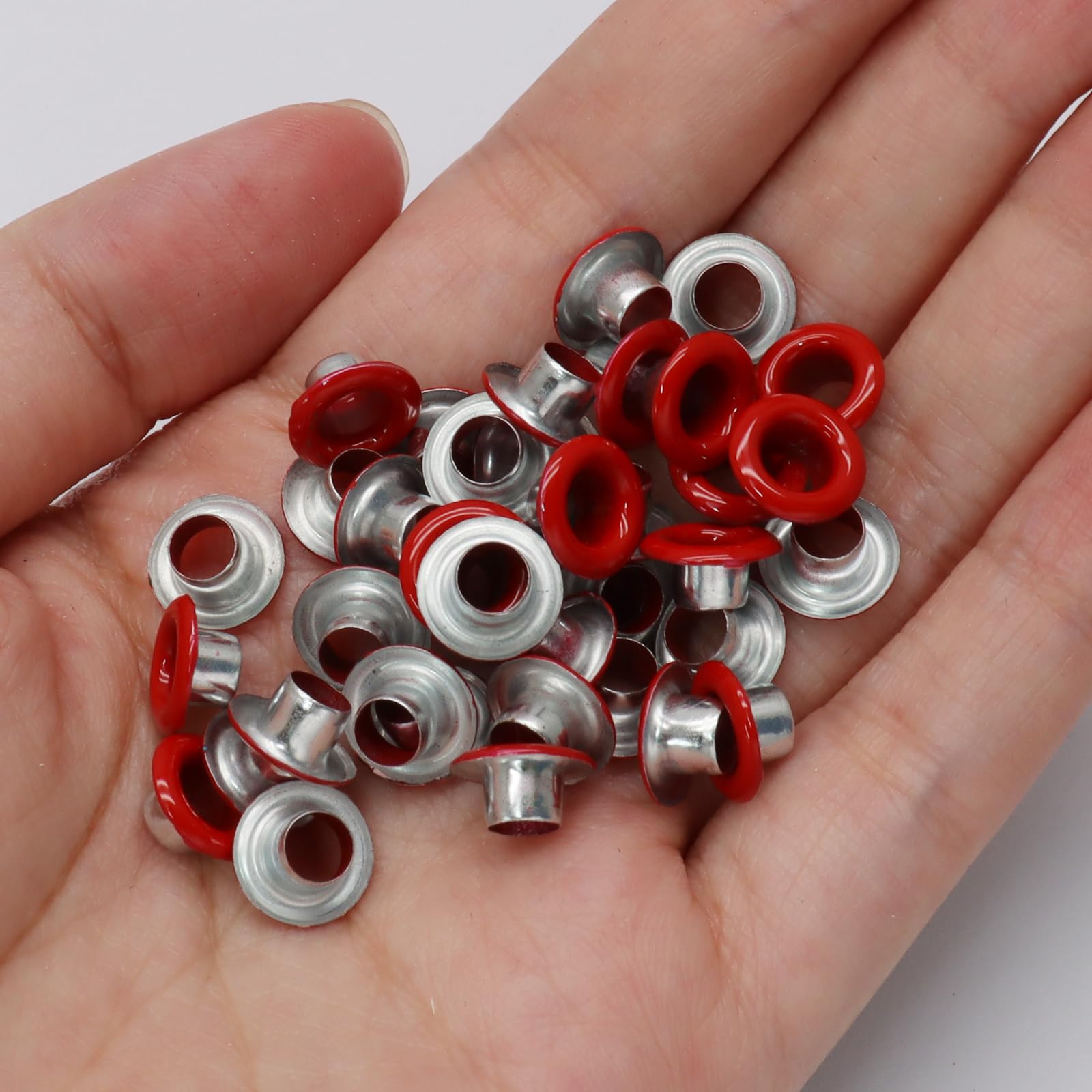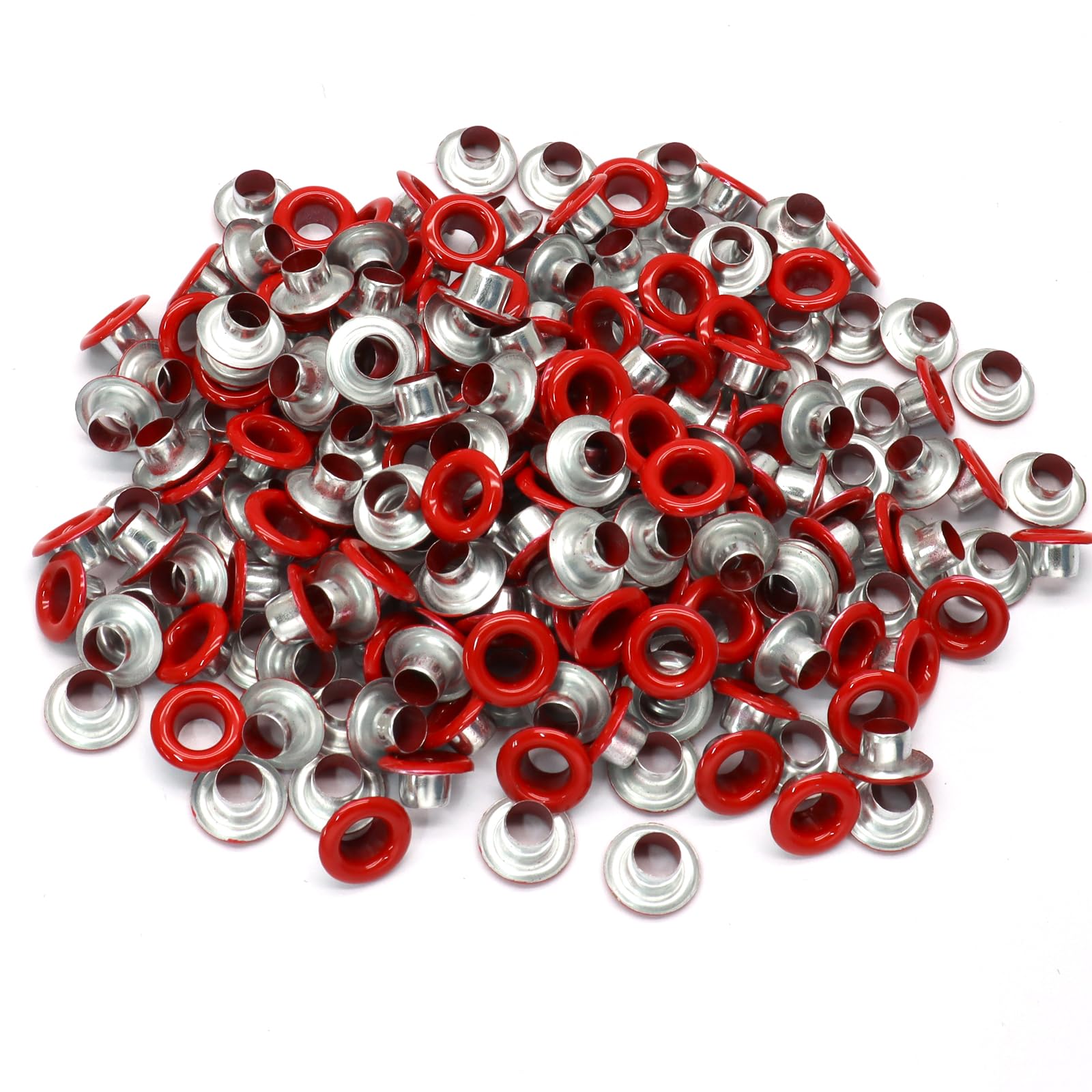 Product Description A eyelet is a ring or edge strip inserted into a hole through thin material. It is used to prevent tearing or abrasion of the pierced material. They are made from brass and are easily used in common projects, requiring only the eyelet itself and a means of setting it with a punch. Specification Color:Red Material:Metal Size:5 mm Number of Pieces:200 Warm Tips The product is relatively small, keep out of the reach of children under 4 years old.