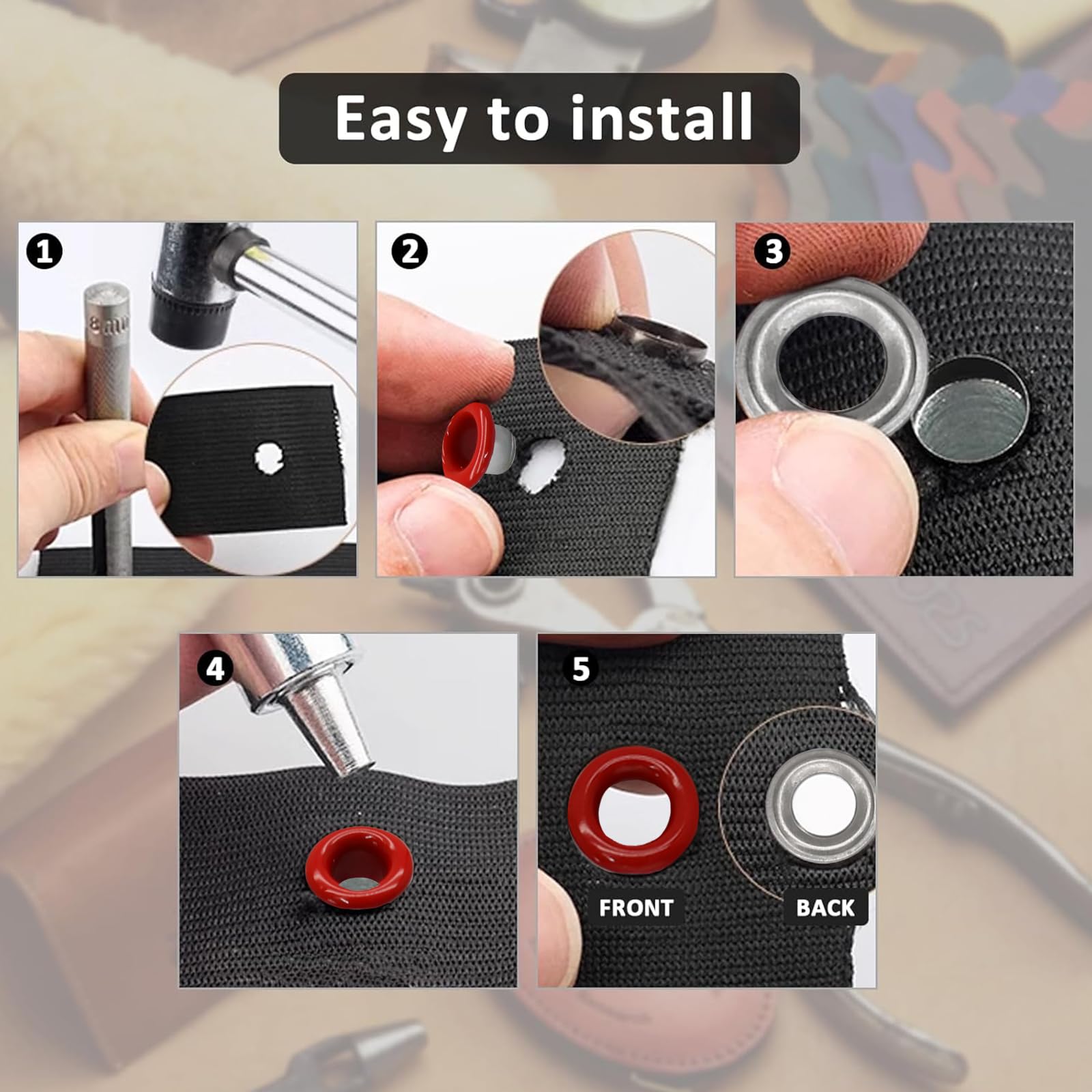 Easy to install and use: Easy to install, punching tools can be used to drill holes in leather crafts, and then hammered to push the grommets together.