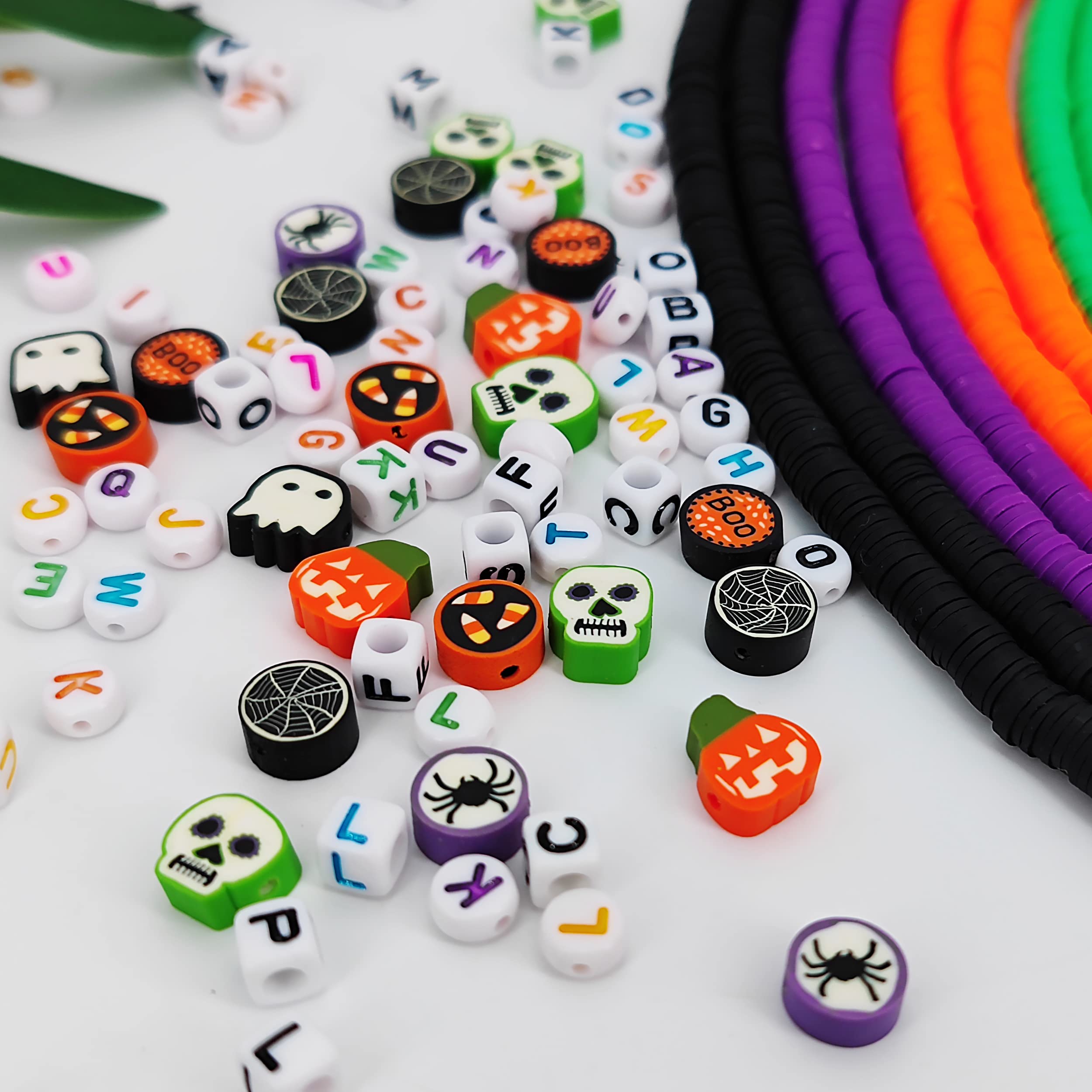 Package Contains: 10 strands of clay heishi beads for jewelry making, each string has about 360 pieces clay beads. 50 pcs Halloween clay charms, 200 pcs acrylic letter beads. The bracelet making beads are sized 6 mm in diameter, 2 mm in hole diameter. The Halloween clay charms are 10 mm in diameter, 2 mm in hole diameter. Enough quantities to creat 50 pcs bracelets.