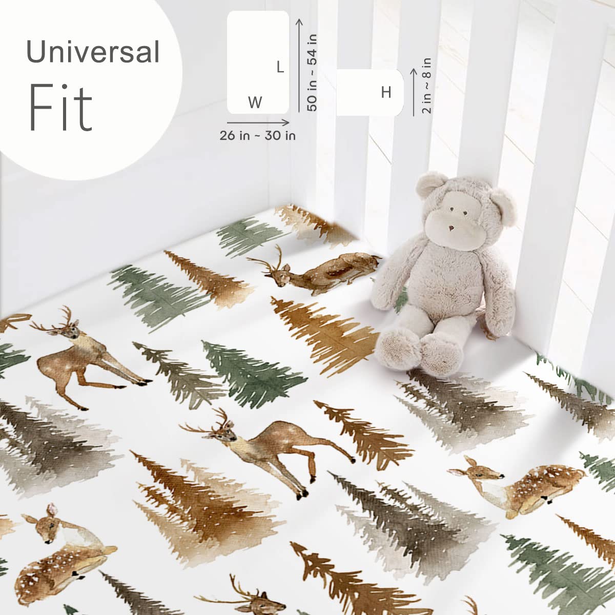 Universal Fit – Measuring 52" x 28" x 8". Our Christmas crib sheet comes with an elastic band all around the sides to securely fit all standard crib mattresses. They are very easy to put in place even when you need to change toddler bed sheets in a hurry. Perfect as baby shower gifts, Christmas crib sheets or for your own nursery.