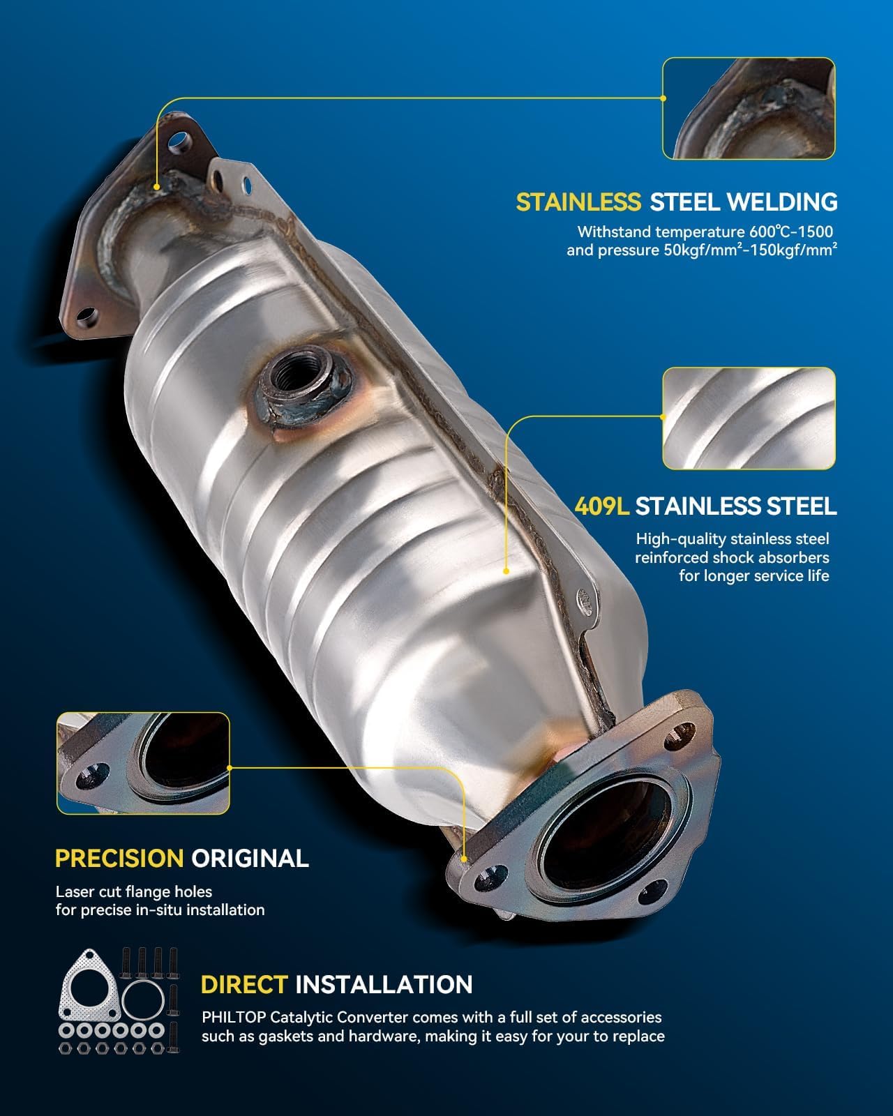 [HIGH FLOW PERFORMANCE ] --- Our catalytic convertor are built to meet OEM specifications. They also feature a high flow design to increase conversion efficiency and vehicle power without sacrificing flow rate.They're also complete with full accessories as gaskets and hardware, facilitating your replacement.