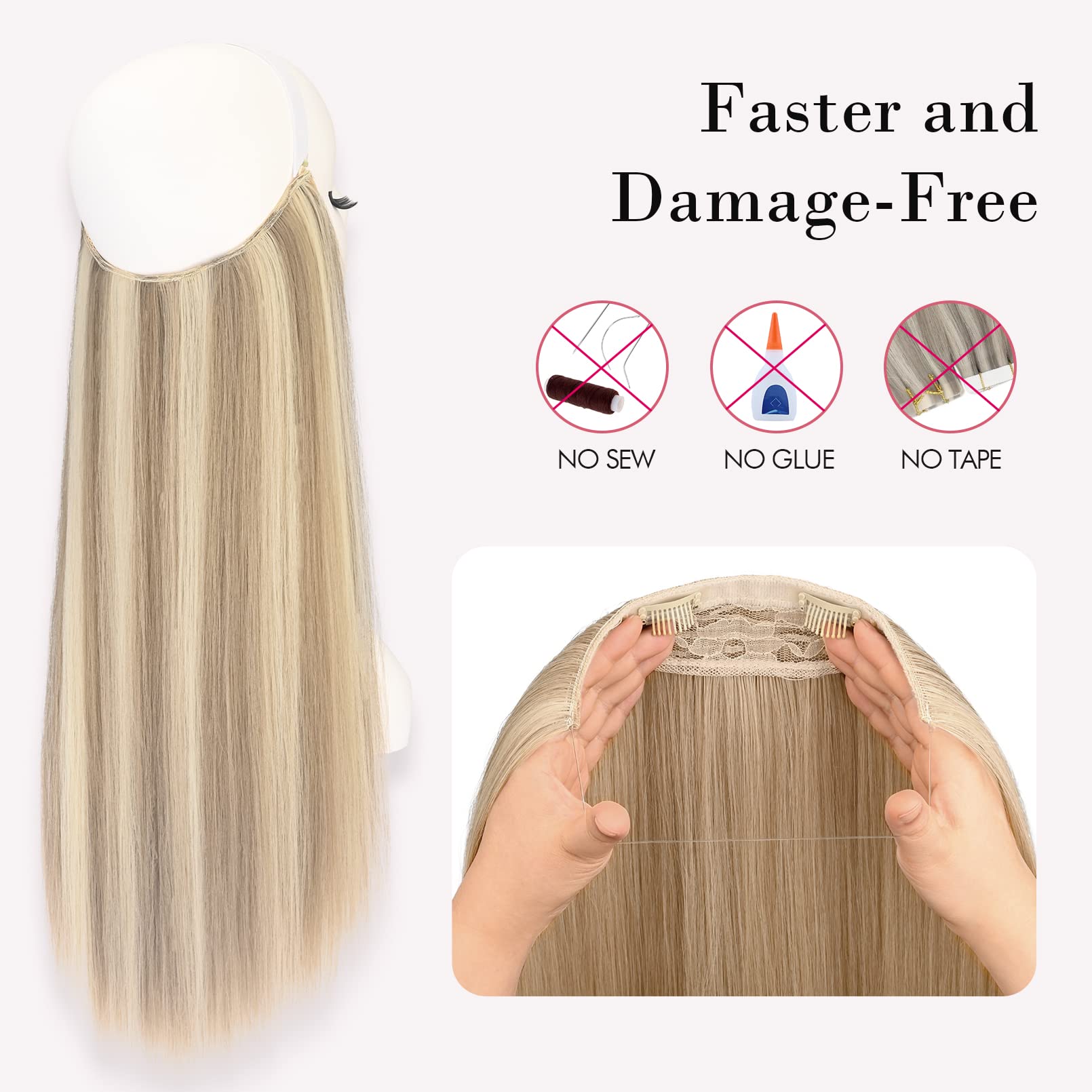 Easy to Apply: No tape, no glue, no sew, only need to position the easy wire hair extensions over your hair like a headband, taking less time for instantly thicker and longer hair without extra help in few minutes