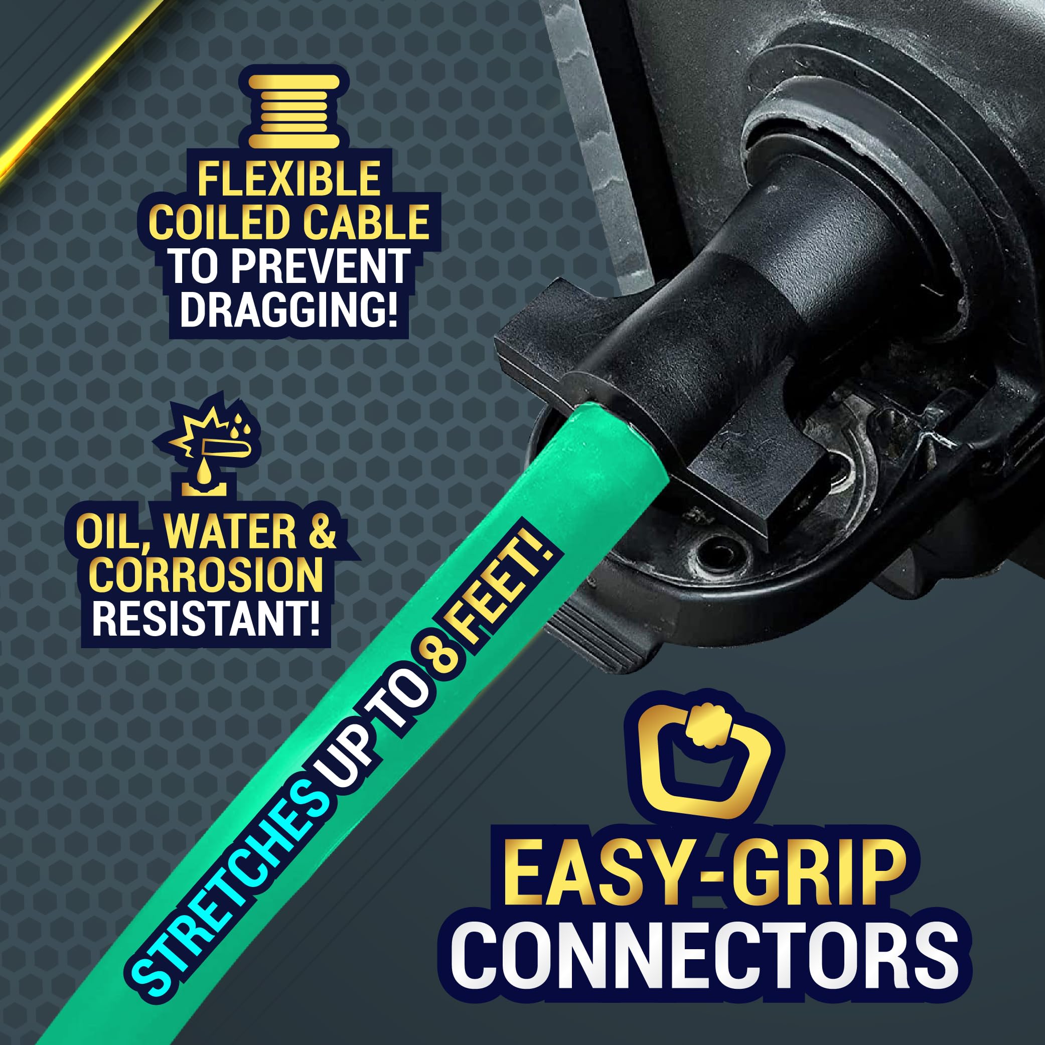 ✅ The LATCH.IT V2.0 7 TO 6 WAY CABLE will EXTEND to up to 8 FEET for a VARIETY of towing CONFIGURATIONS. PREVENTS DRAGGING while keeping A PERFECT CONNECTION between your towing vehicles. THICK 14 & 16-GAUGE COPPER WIRE ensures a RELIABLE & UNBREAKABLE CONNECTION. SAFELY TOW during all your ADVENTURES!