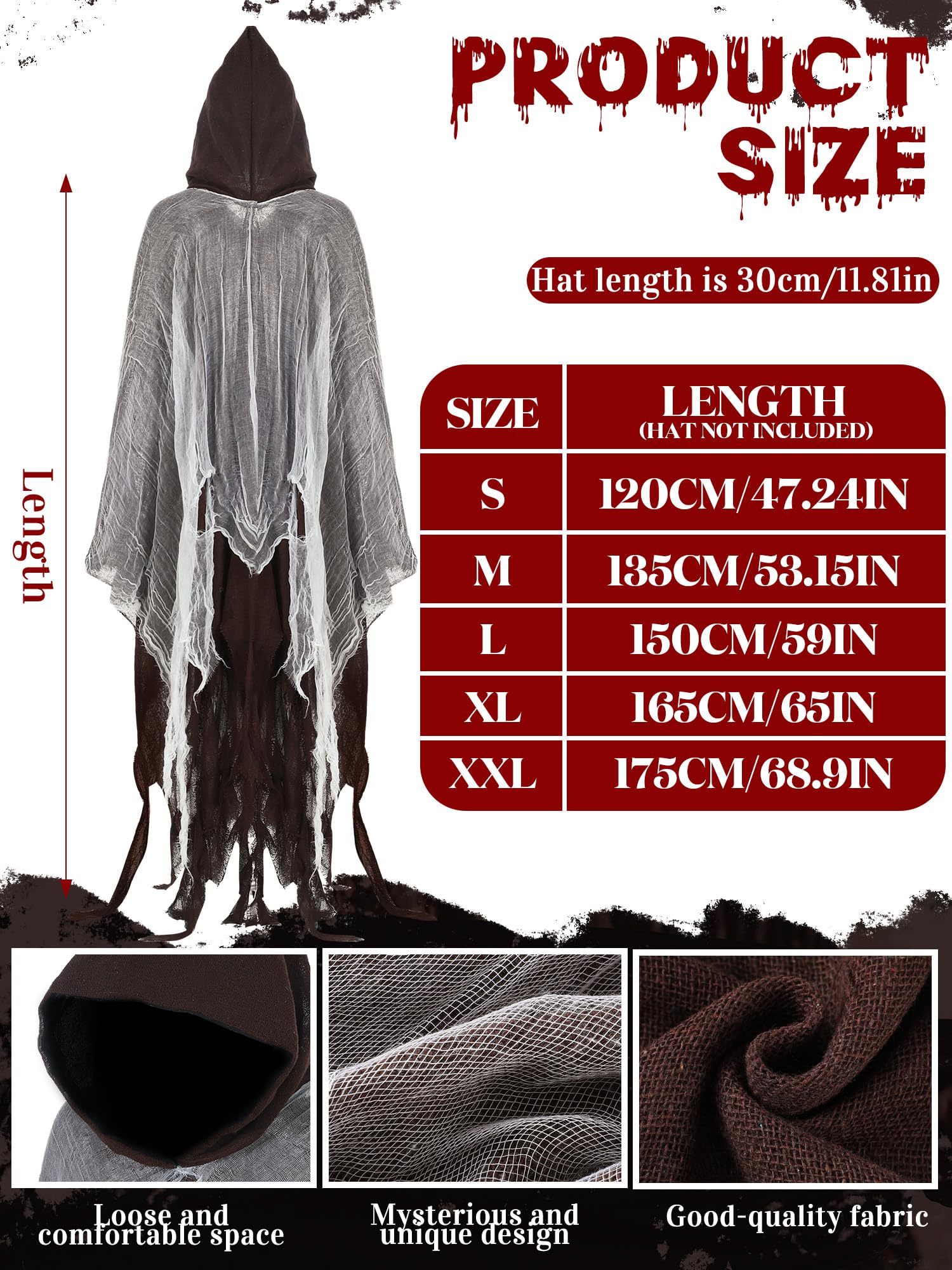 Featuring the sense of mystery: designed with fabric and hole mesh, our cloak with hood delivers a sense of horror and mystery; It adds a layer of realism to your character portrayal, allowing you to truly embody the role you're playing