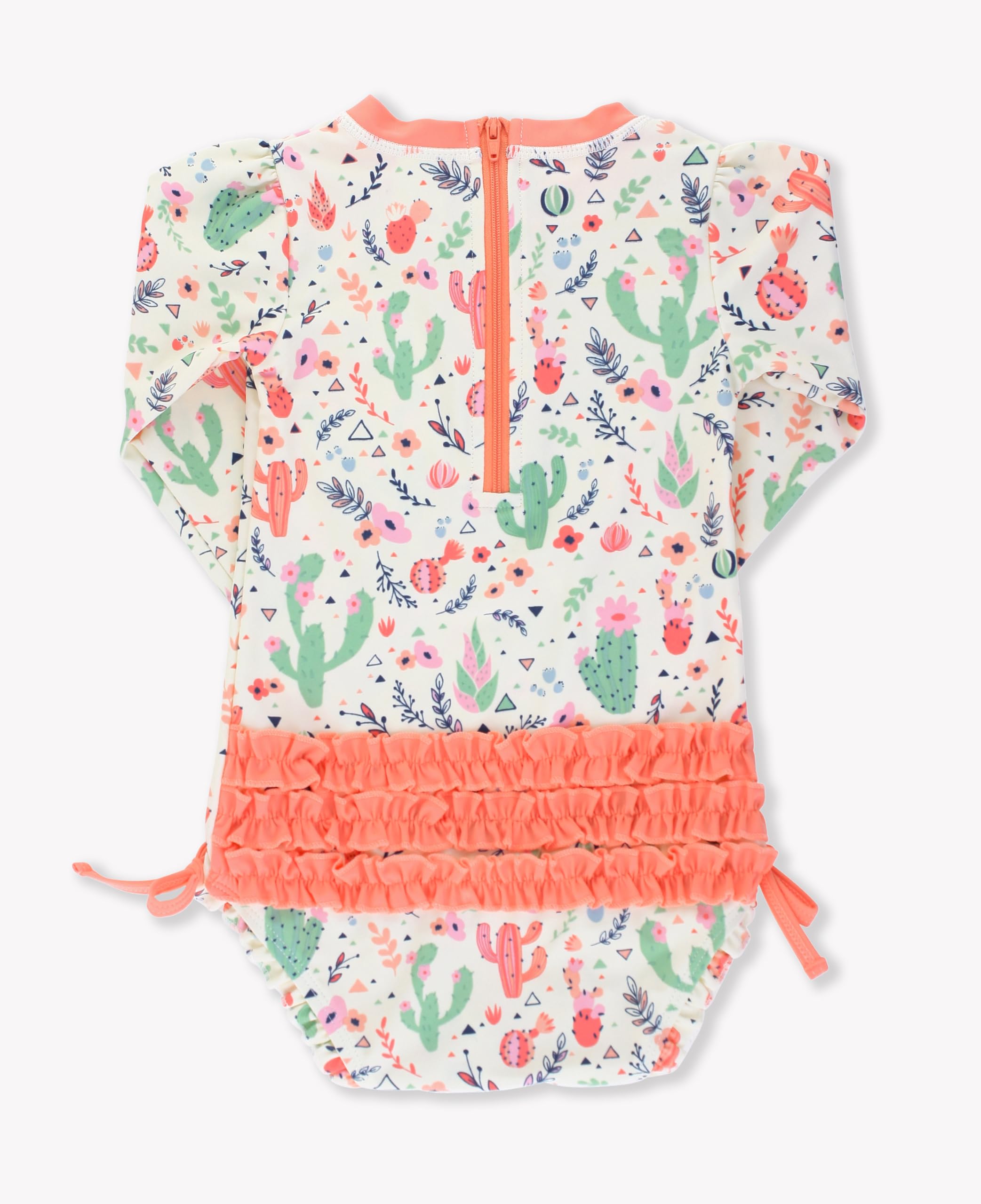 Description A wonderful addition to your little girl's swimwear, this Tropical Baby One Piece Rash Guard is comfort and style rolled into one. Unlined with snaps at bottom that make for easy changing. Made with sun protected fabric for all day protection and comfort.