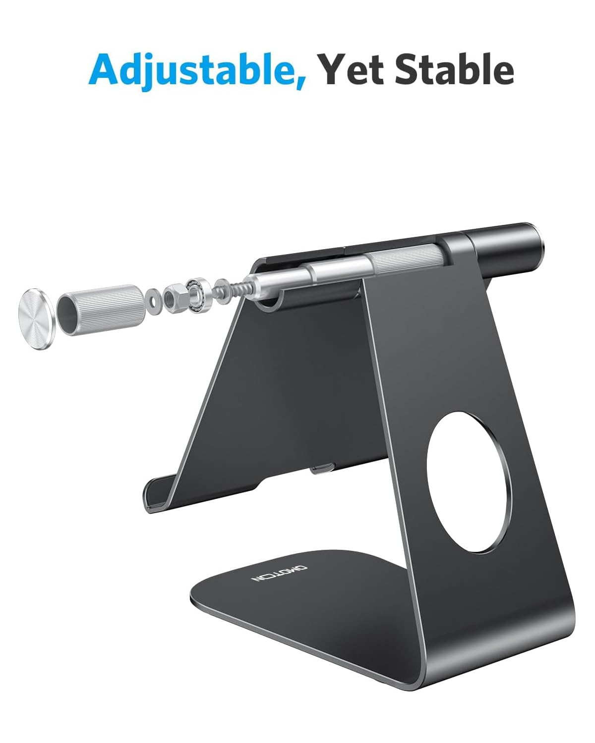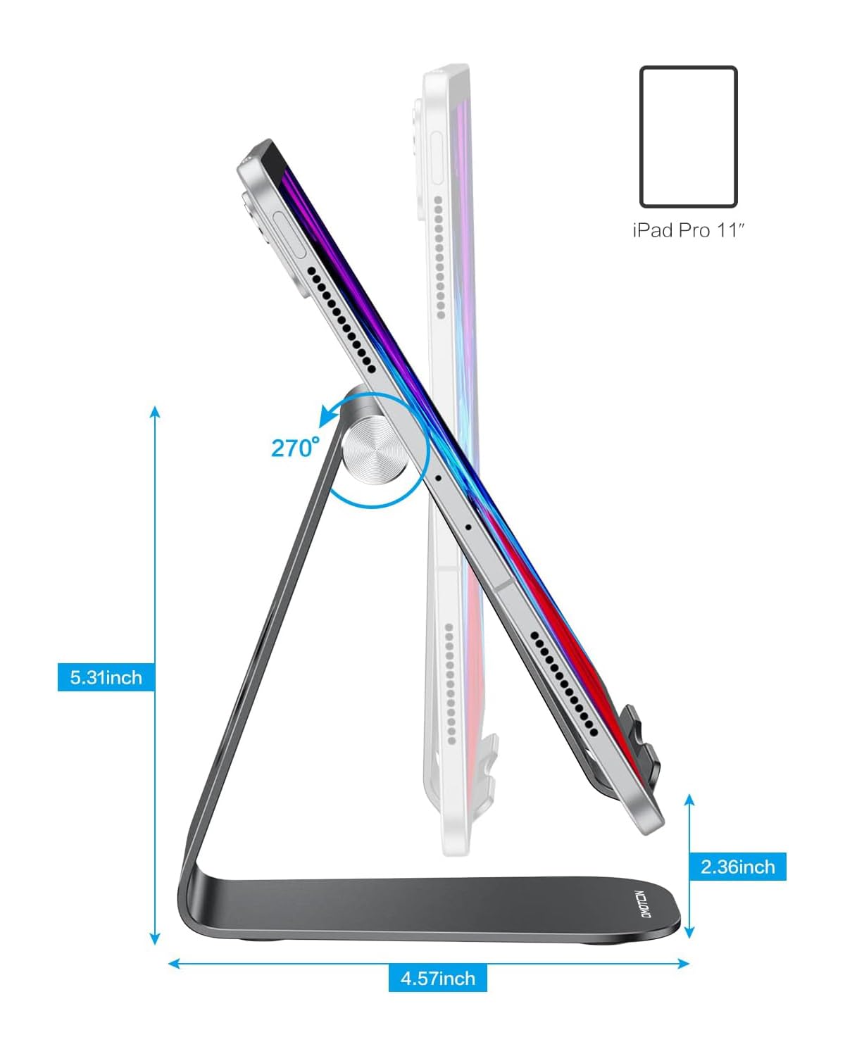 Great Stability: Made of solid metal material, this tablet stand will not wobbling when sitting your cellphone on. Sleek design ensures comfortable hand feel.