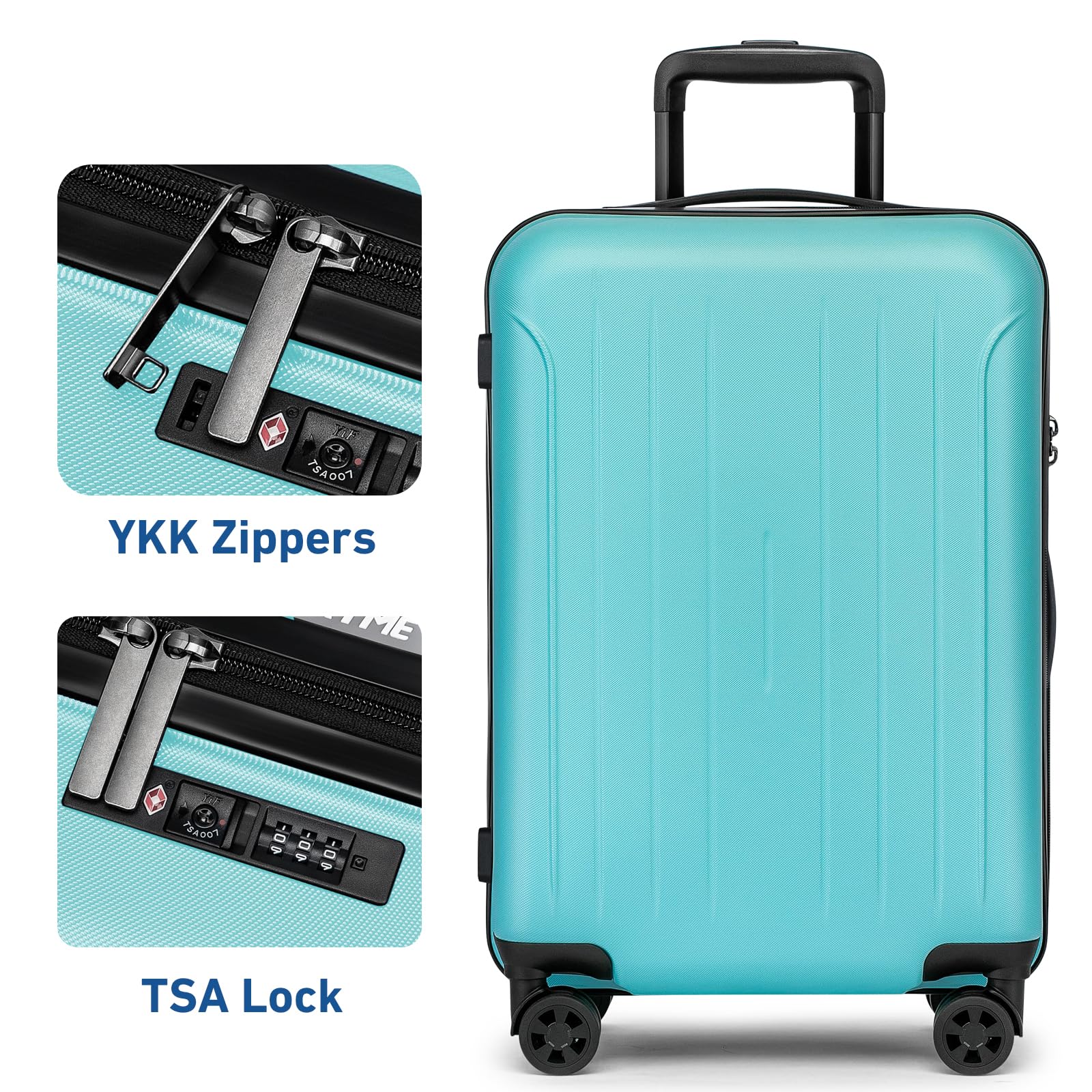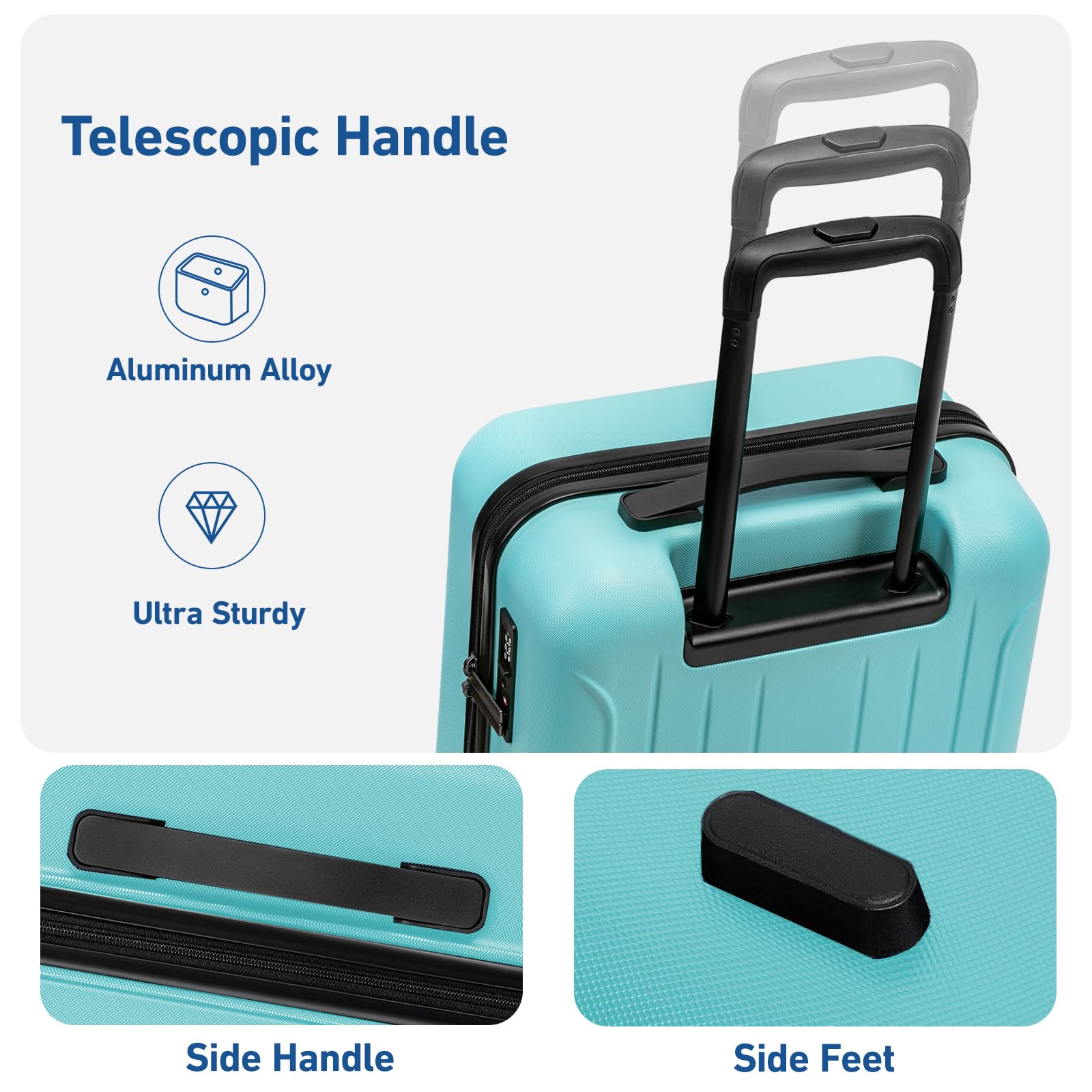 2 Pieces Luggage Sets Includes:20" carry on(21.7 x 13.8 x 9.8 inches) and 24" spinner suitcase(26.7 x 16.7 x 10.6 inches).Carry-on luggage suitable for short trips and 24" checked luggage maximize your packing power and the ideal checked bags for longer trips