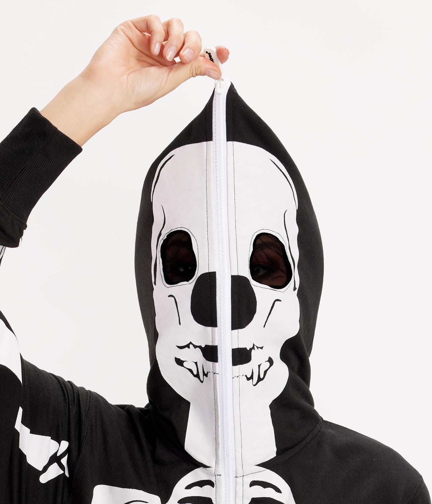 PREMIUM CONSTRUCTION Tipsy Elves Skeleton halloween costumes for women are crafted with premium, durable materials. Printed front and back bones with hood mesh eye holes!