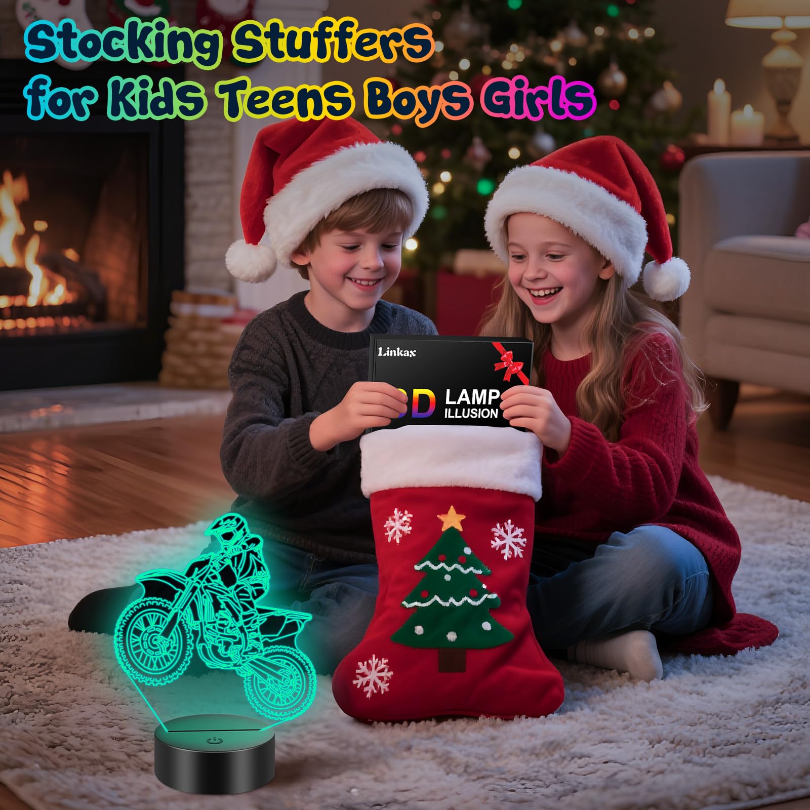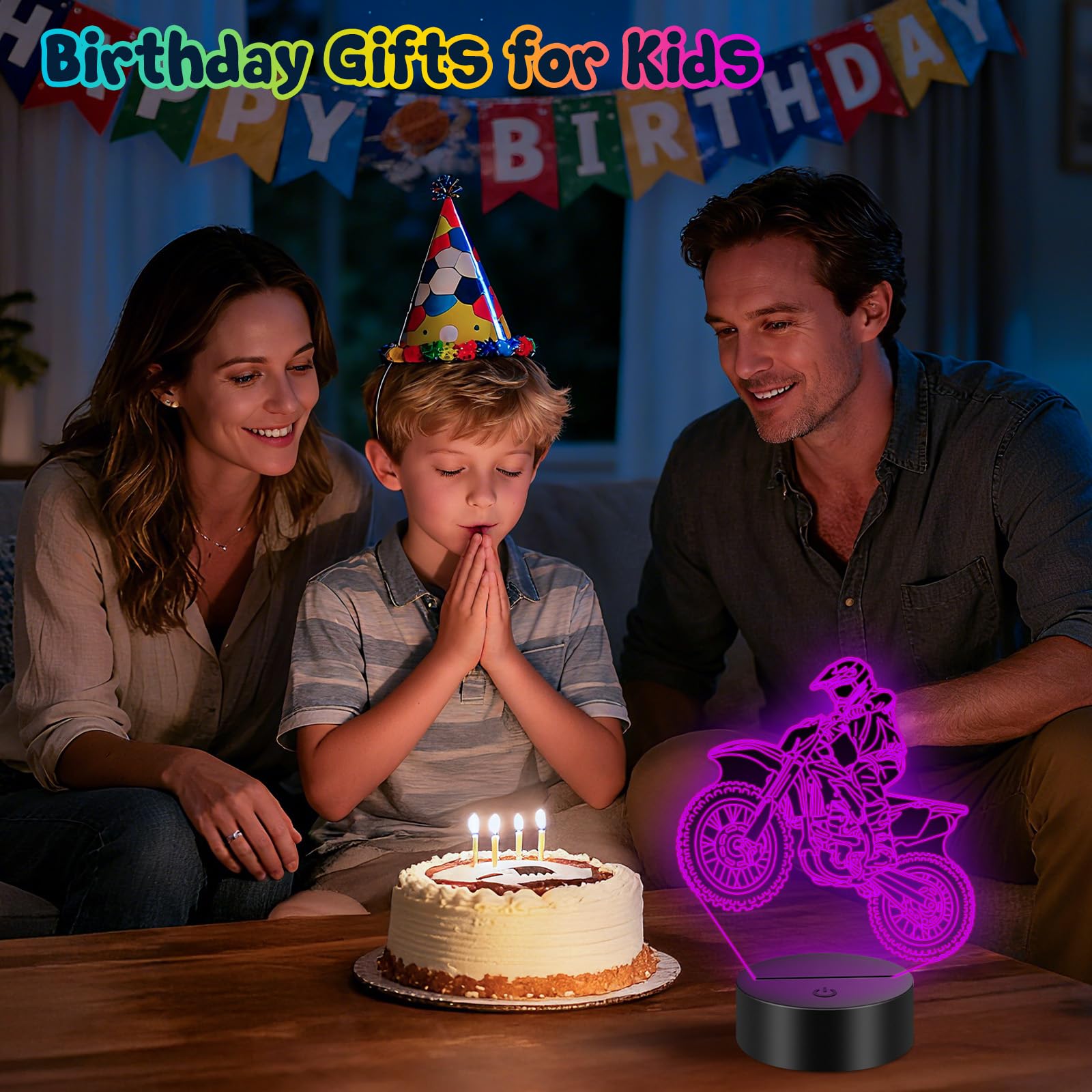Motorcycle Night Light Gifts Stocking Stuffers for Kids Teens Boys Girls Ideas: If your child likes Motorcycle or is a Motorcycle fan, then this motorcycle light must be the best gift idea. This bike 3D night light will bring a good night and sleep atmosphere to the bedroom, with color change and 3D visual appearance, which creates the most special bedroom decoration; This is a special motorcycle gift, birthday gift, back to school gift, easter gift, christmas gifts, valentine's day gift, christmas stocking stuffers, secret santa gifts, 7-15 year old boys gifts or holiday gift idea for children, friends and family.