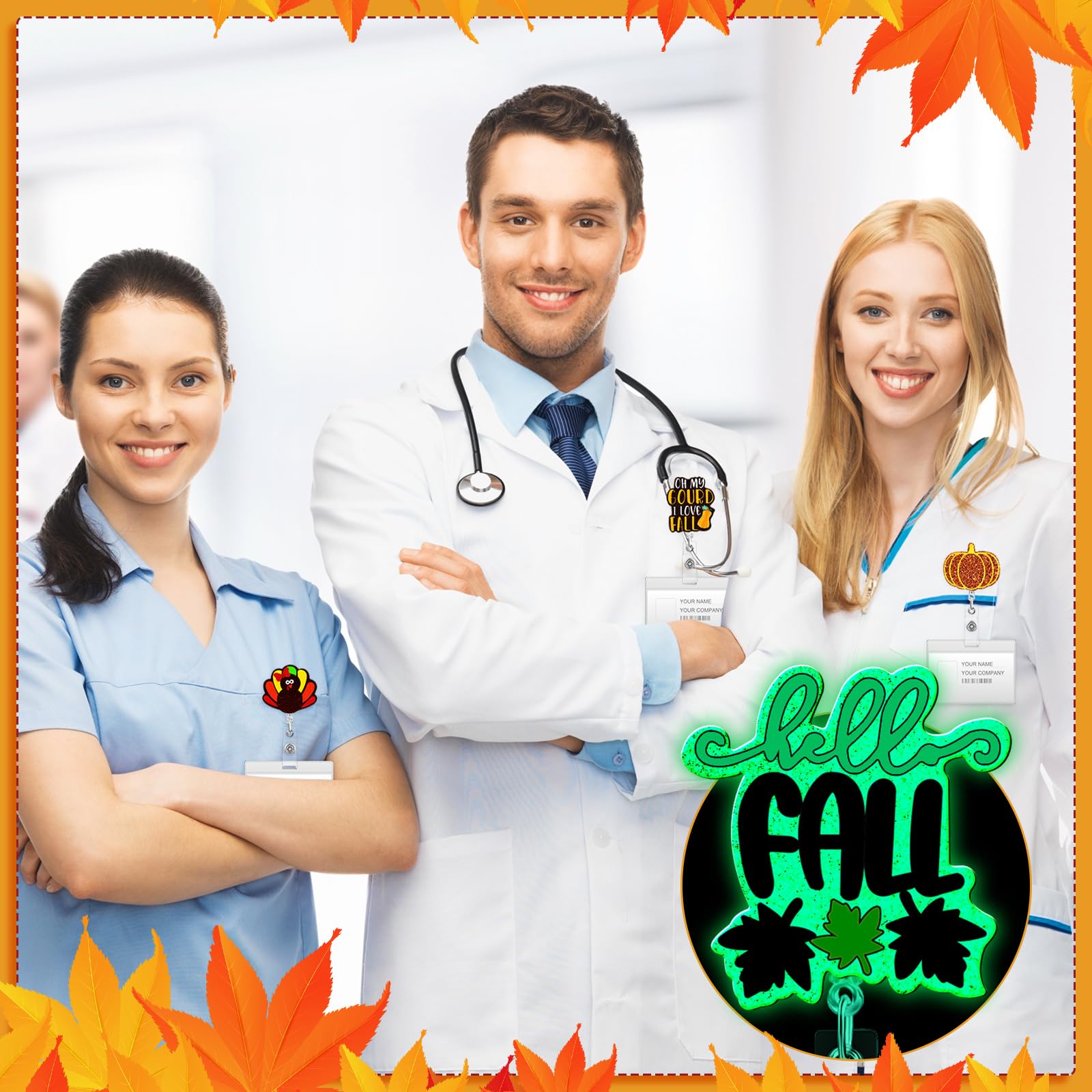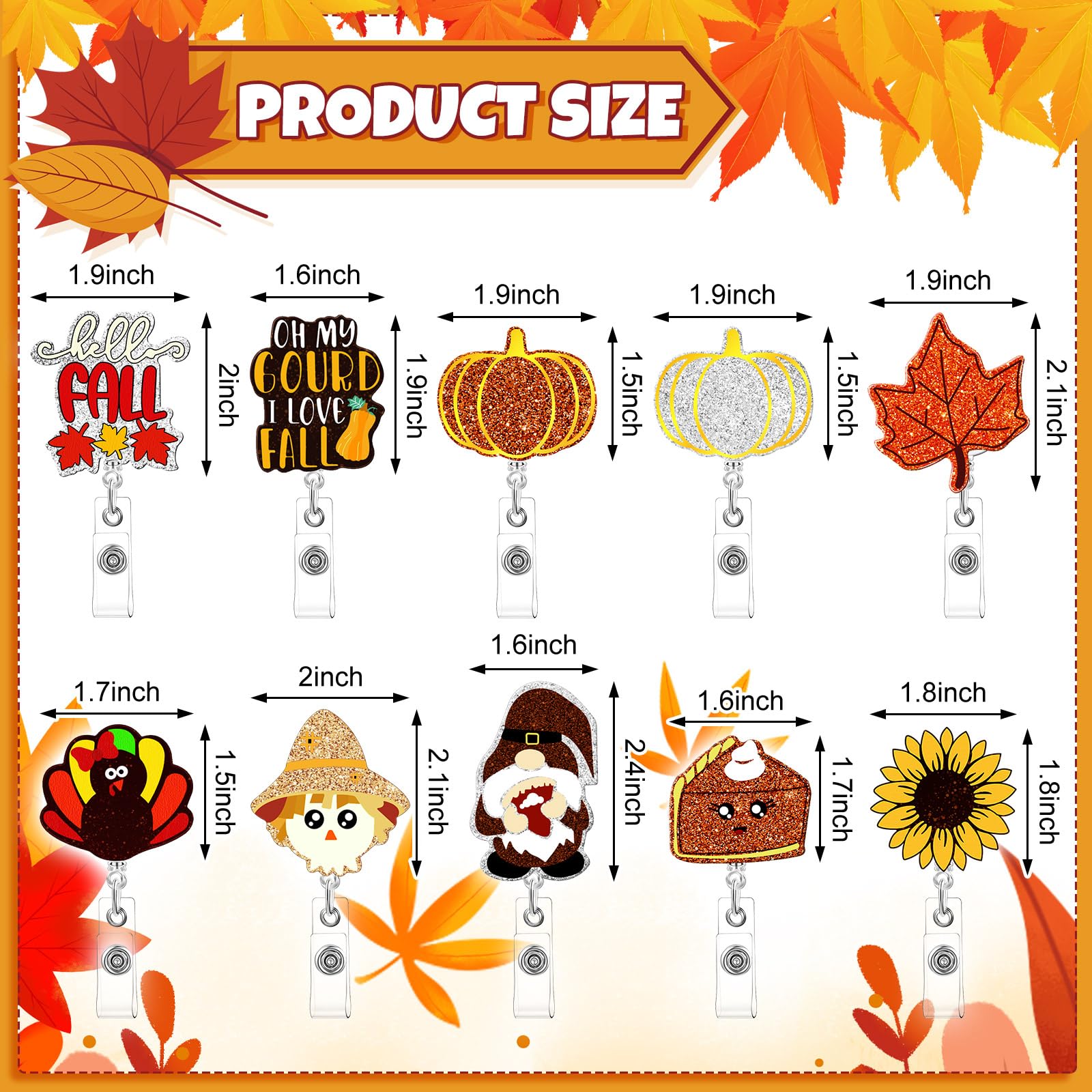 Yeaqee 10 Pcs Thanksgiving Badge Reels Retractable Fall Badge Reel Pumpkin Glow in The Dark Autumn Maple Leaf Turkey Nurse ID Holder with Alligator Clip for Fall Thanksgiving Gifts