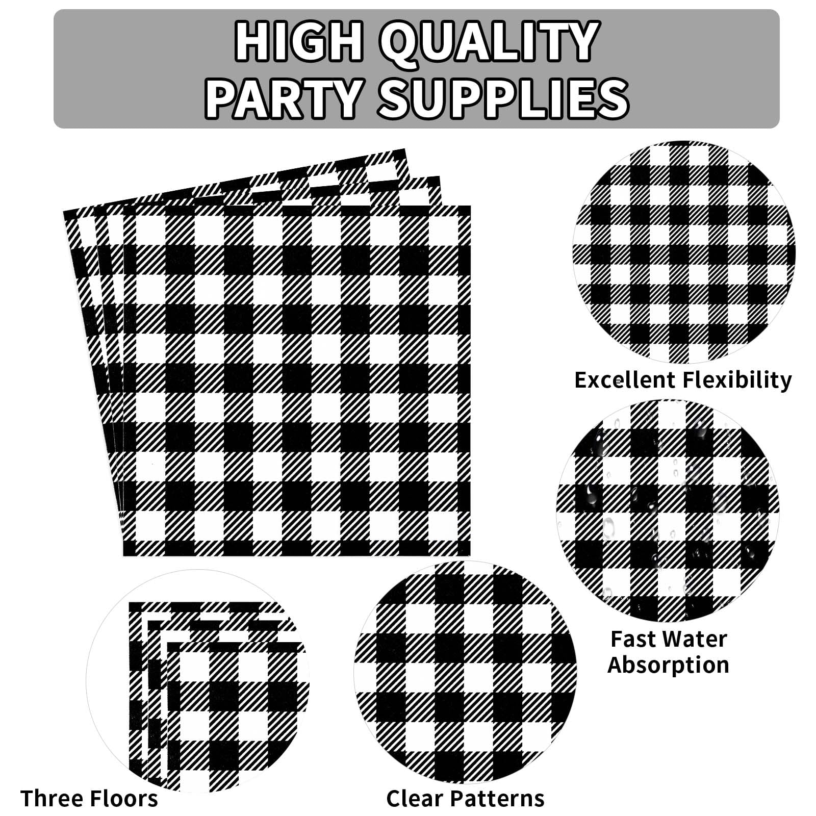 Black and White Checkered Design: The black and white plates and napkins party supplies features a simple and classic gingham design in black and crisp white, stylish, classic and easy-match, can be used in many situations