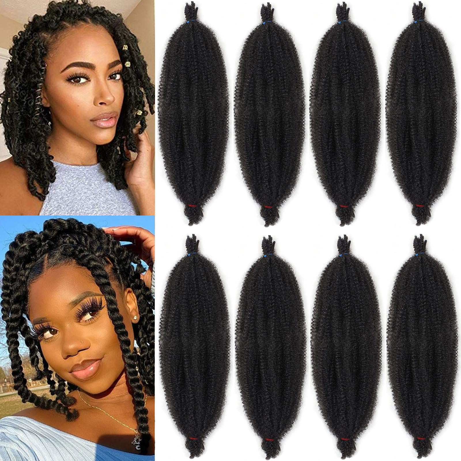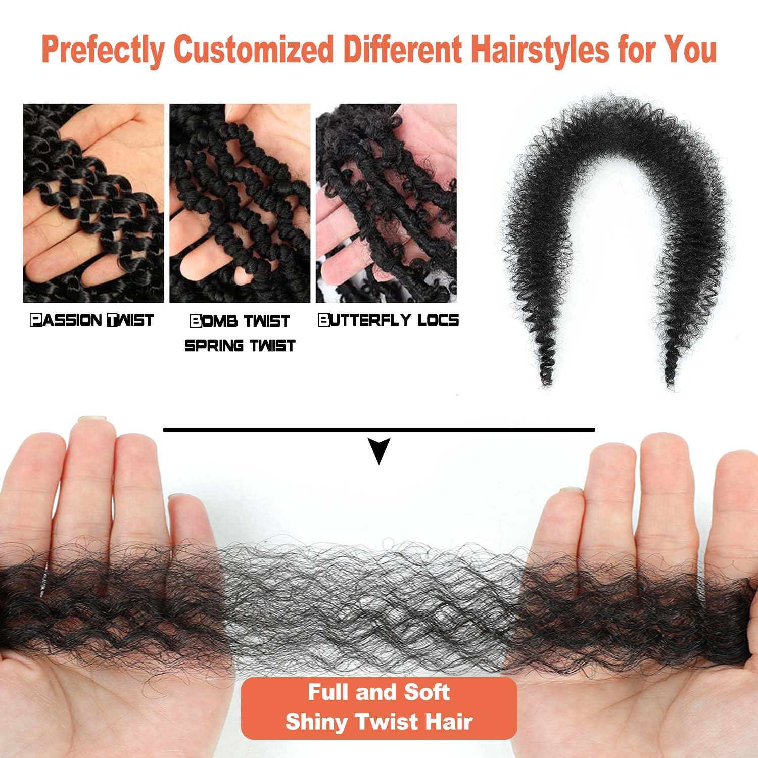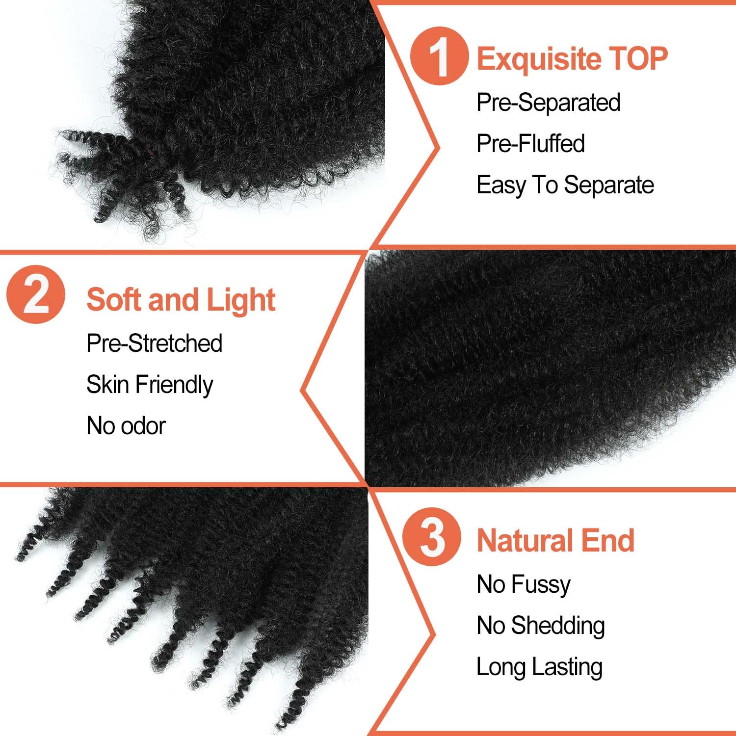 1.Hair Material: afro twist hair made of 100% high quality low temperature fiber. Our spring afro twist hair boasts more density and natural looking,Perfect for any protective hairstyle.