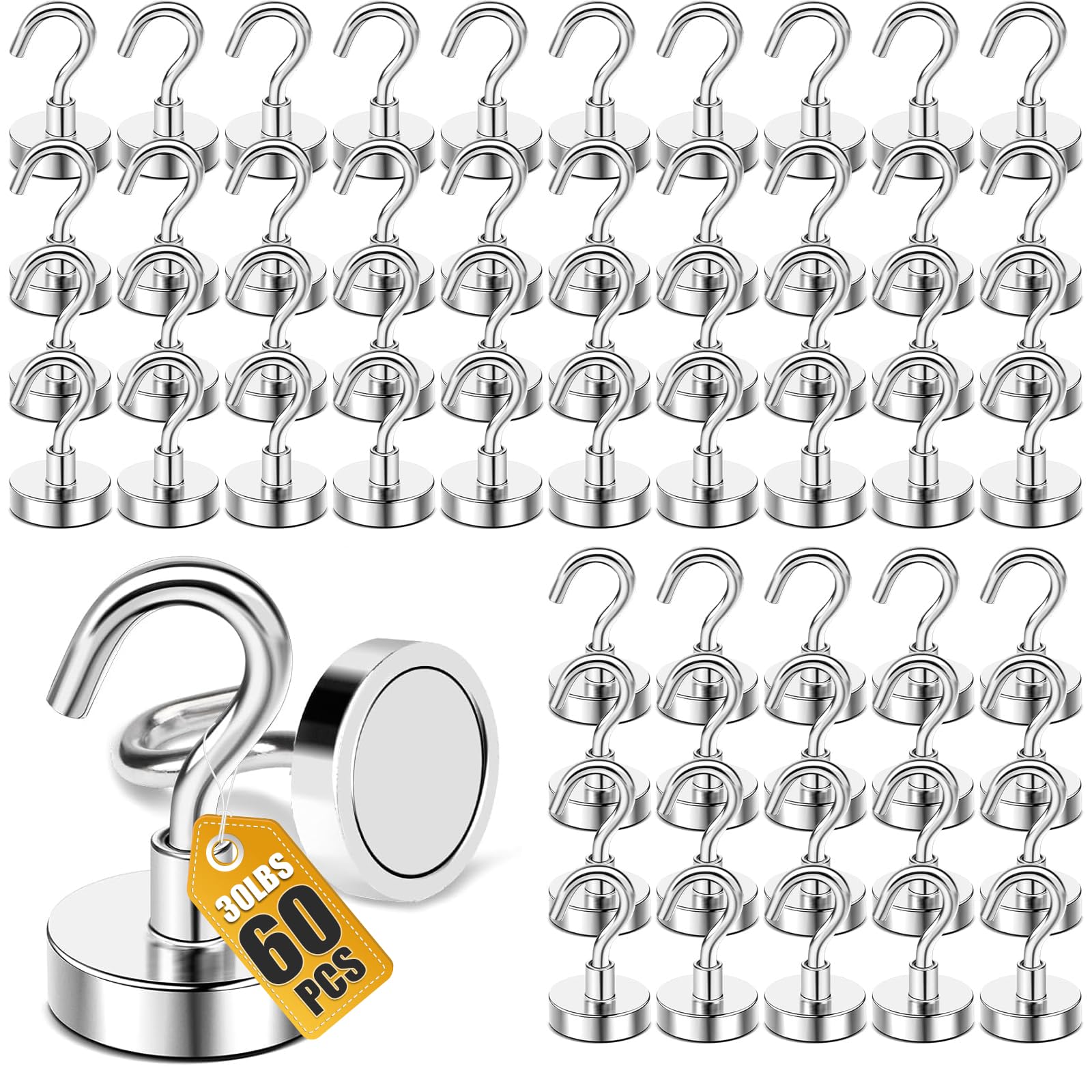 Powerful & Durable:We provide 3 layers of coating on the metal base, metal hook and magnet: Ni-Cu-Ni, so our magnet hooks have excellent anti-corrosion and scratch resistance. The magnetic hooks use high-quality neodymium magnets, which provide a strong magnetic force and can hang items weighing up to 30 pounds