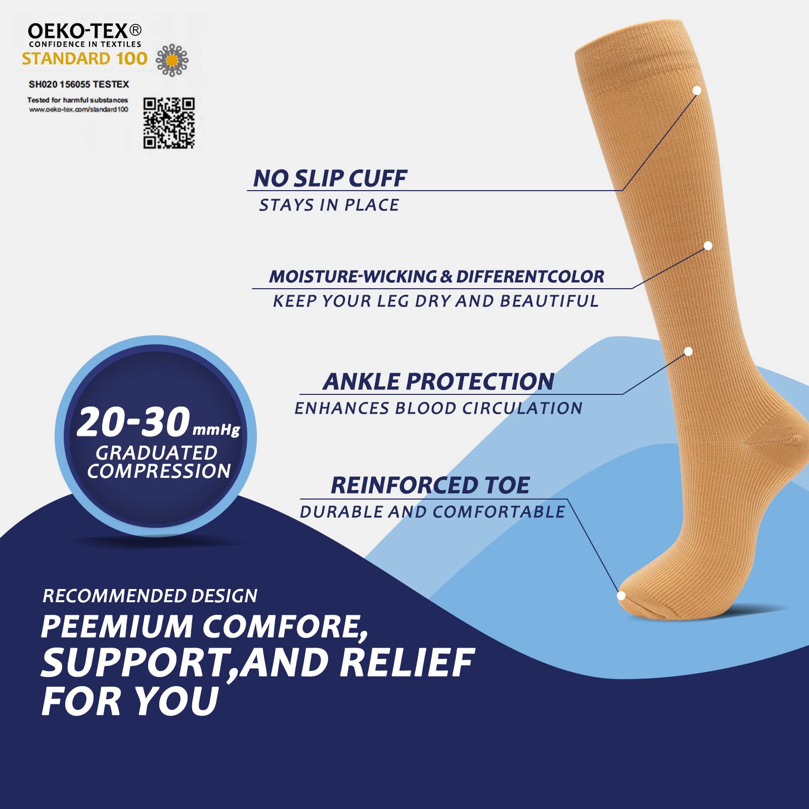 Compression socks 20-30mmHg are suitable for a variety of scenarios, nursing, pregnancy, travel, flying, running, cycling, skiing, Fenglaoda compression socks are all by your side!