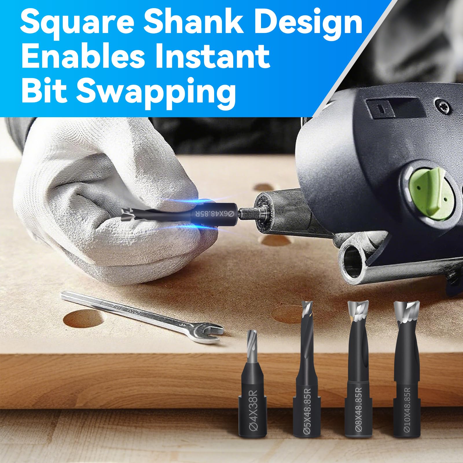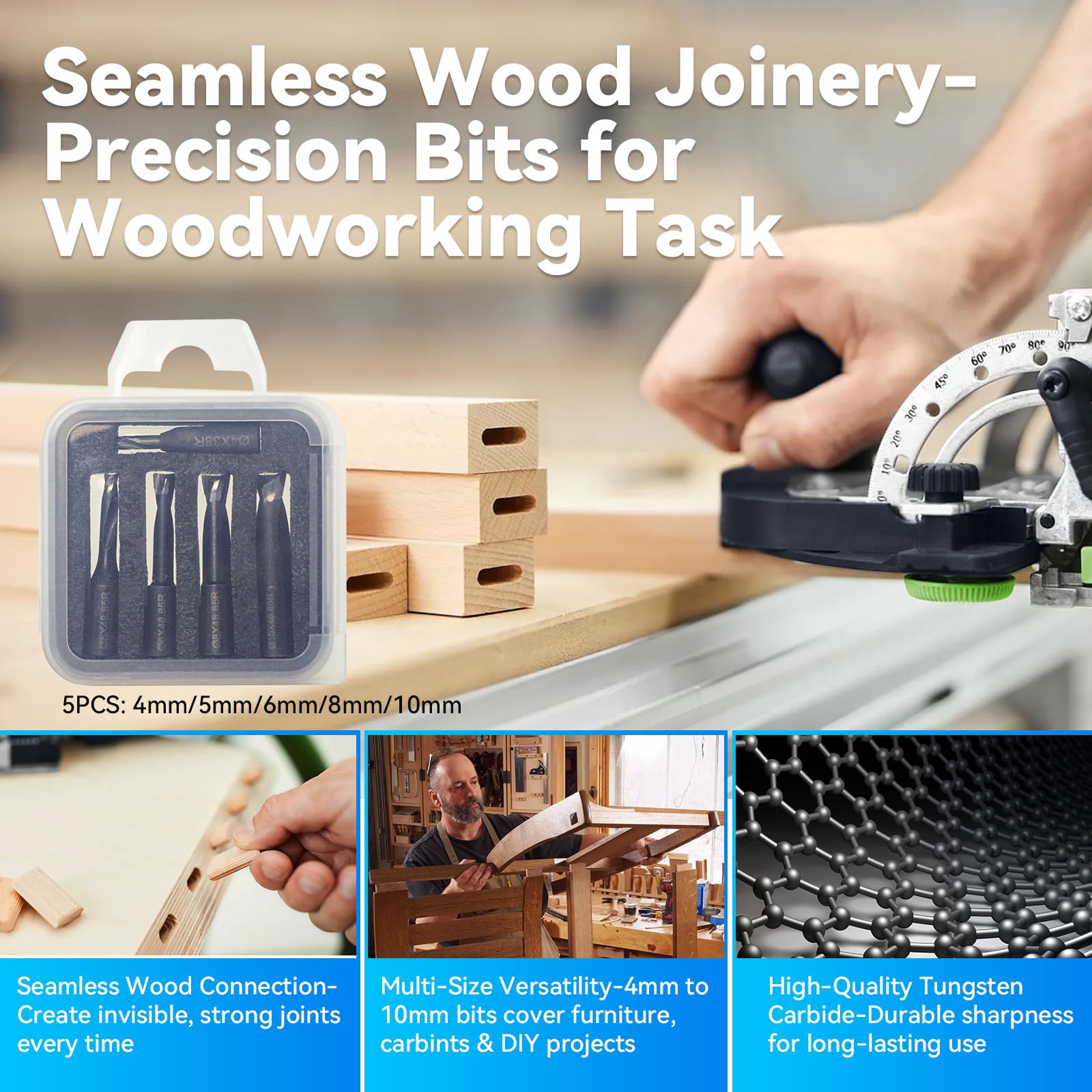 COMPLETE SET: Includes 5 precision-engineered solid carbide bits: 0.16", 0.2", 15/64", 5/16", and 25/64" diameters for versatile jointing options