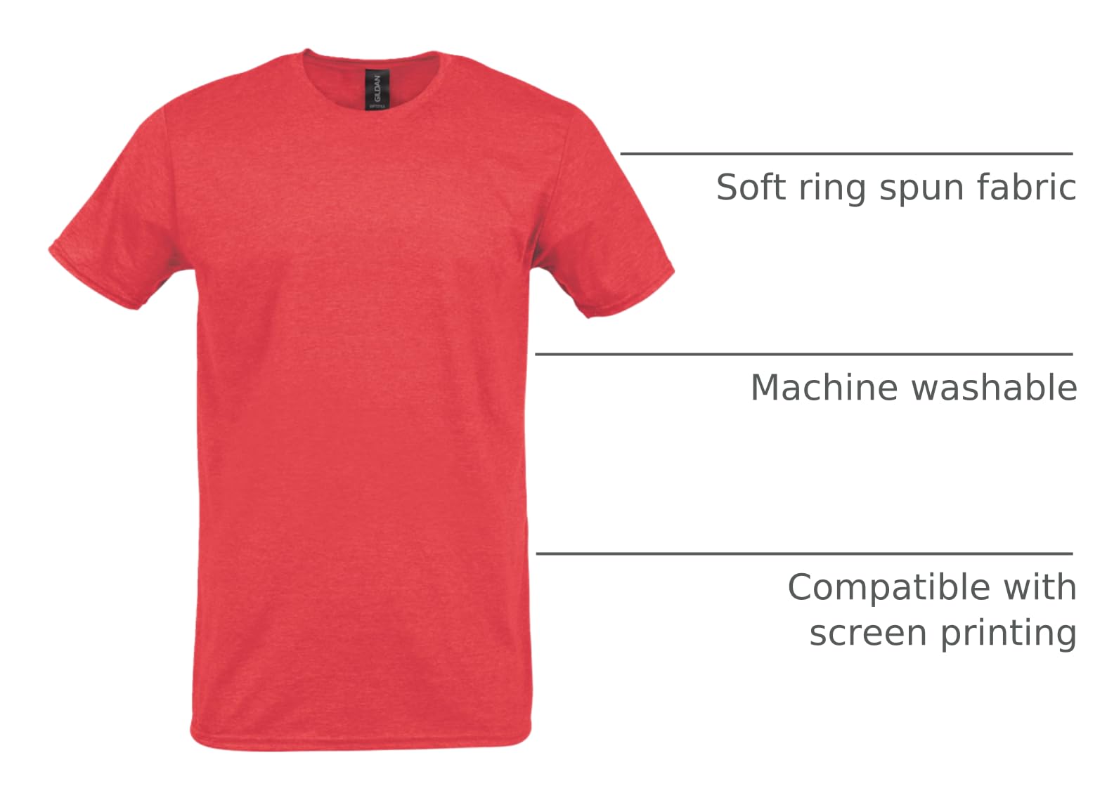 Description Gildanβs Adult Softstyle Cotton Tee G64000 has the perfect combination of softness and durability to ensure it stands the test of time. Made of 100% ring spun cotton with a modern classic cut, itβs perfect for lounging on the couch or going to a movie. Its soft smooth fabric is perfect for screen printing, embroidery, DTG, bleaching and tie dyeing.