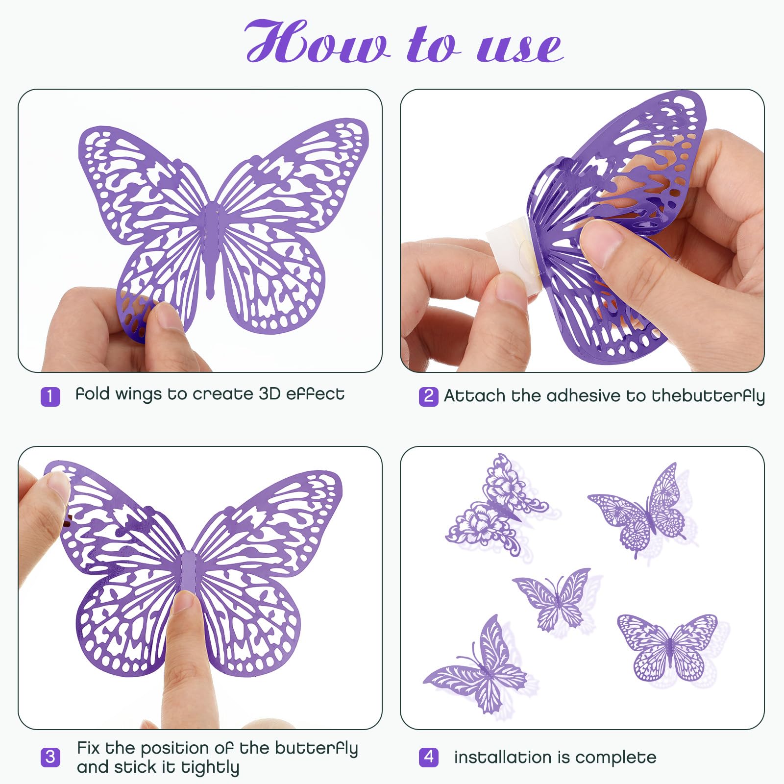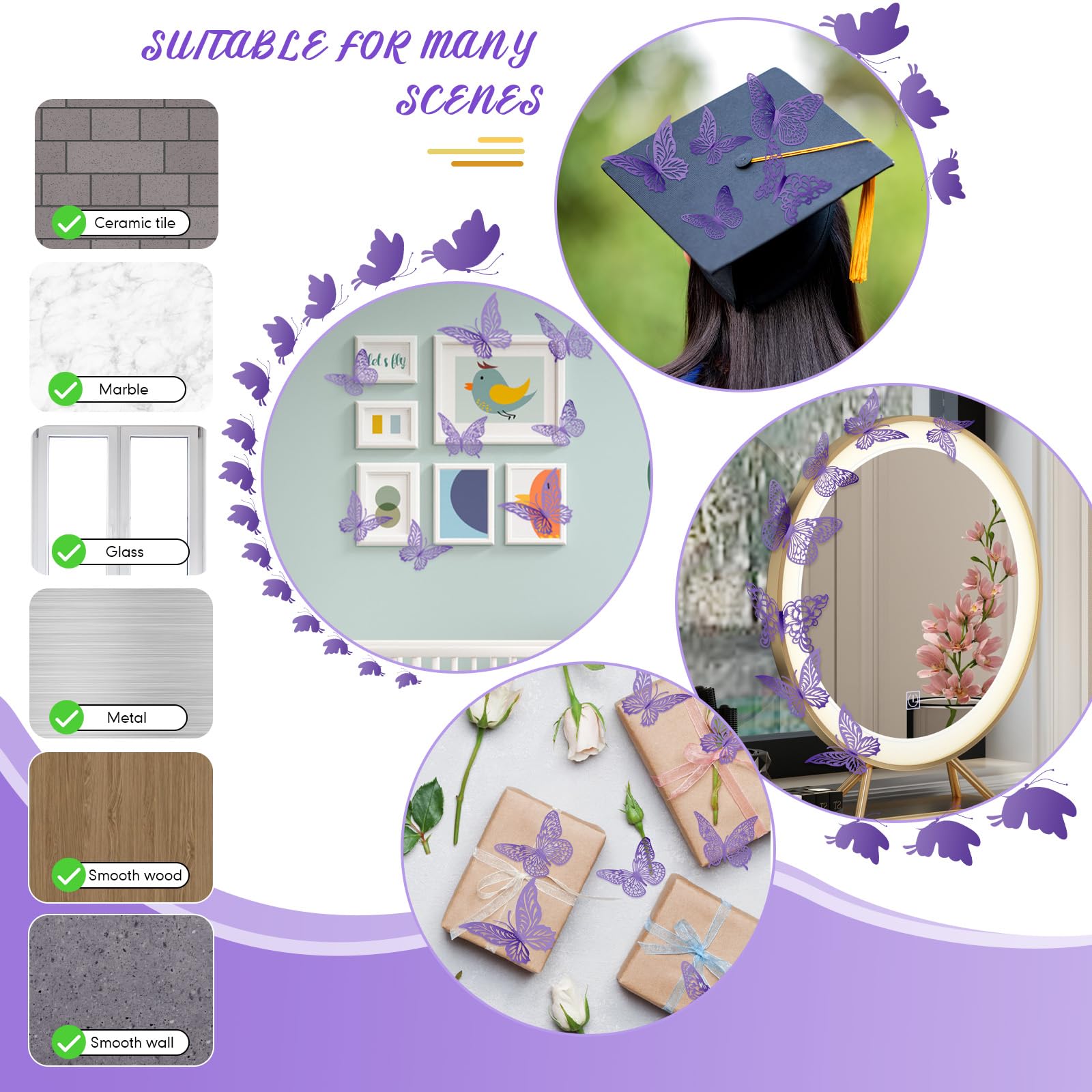 Easy to Use - Our butterfly stickers come with 48pcs strong stickiness and removable adhesive. High-quality glue and will not easily fall off the wall. Moreover, the glue is removable and will not leave marks or damage the wall.