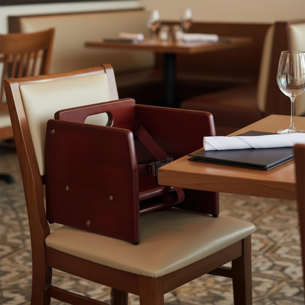 Secure 3-Point Harness – Keeps guests safely in place during dining; includes additional chair strap for stability.