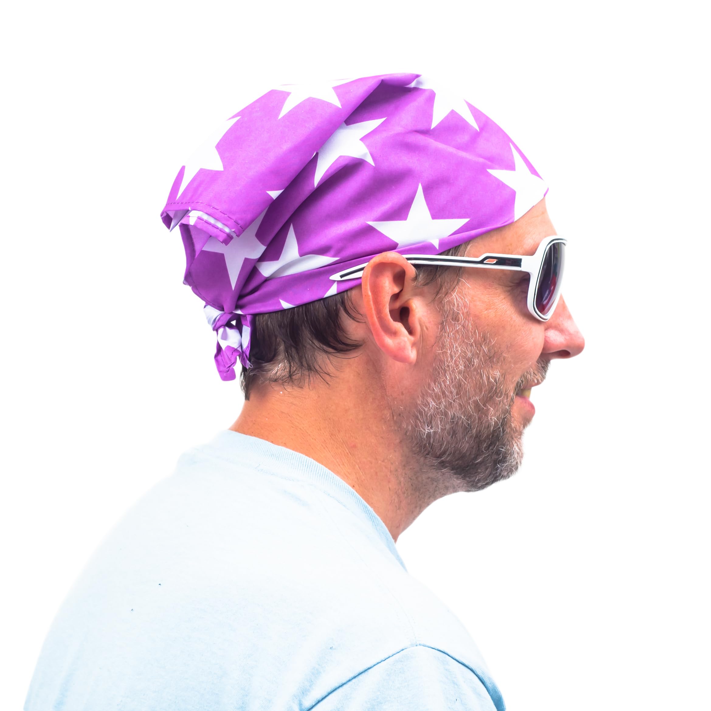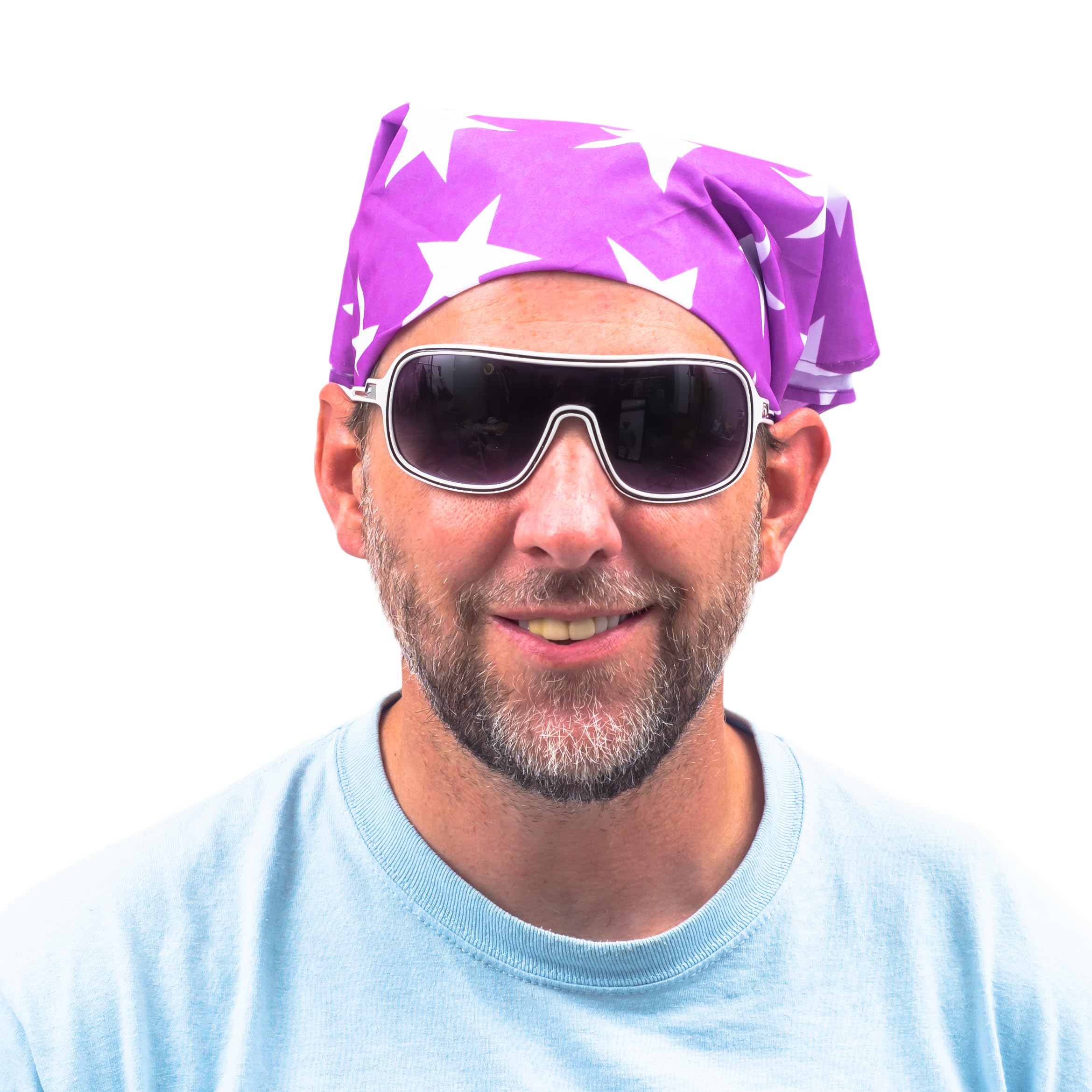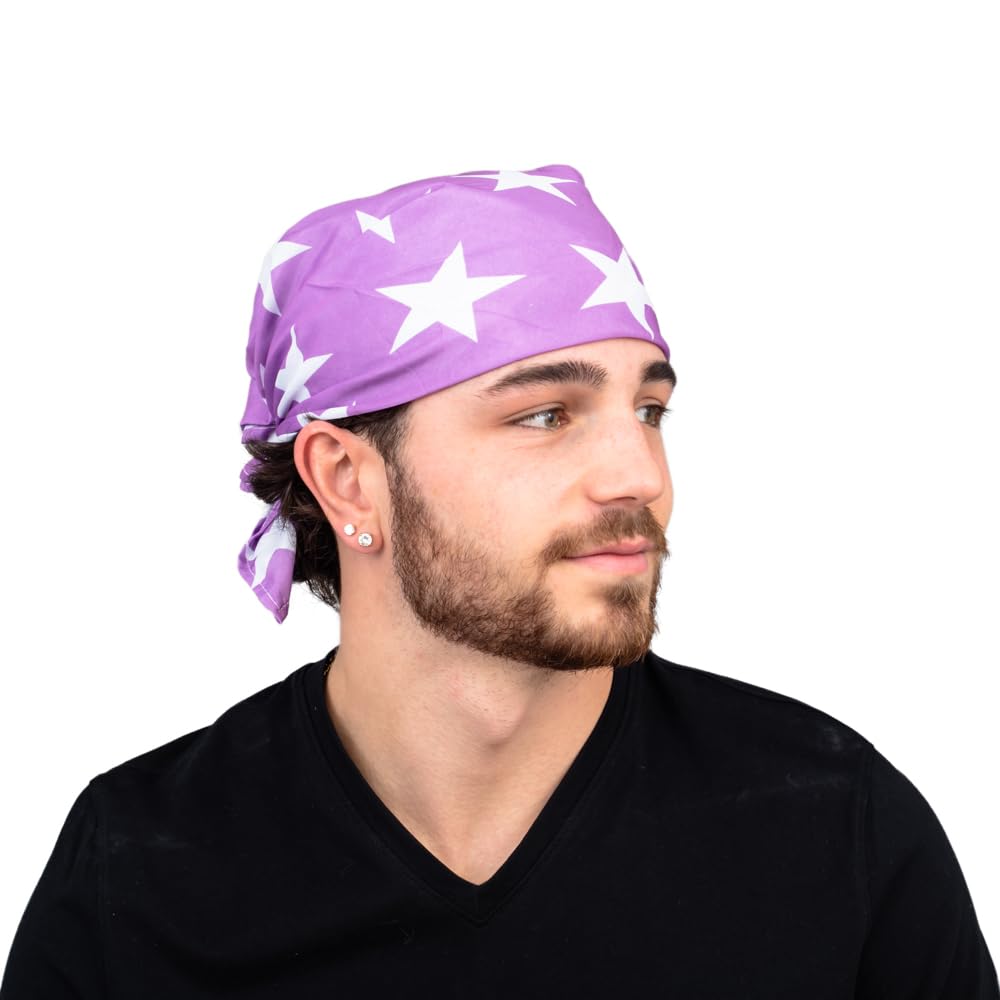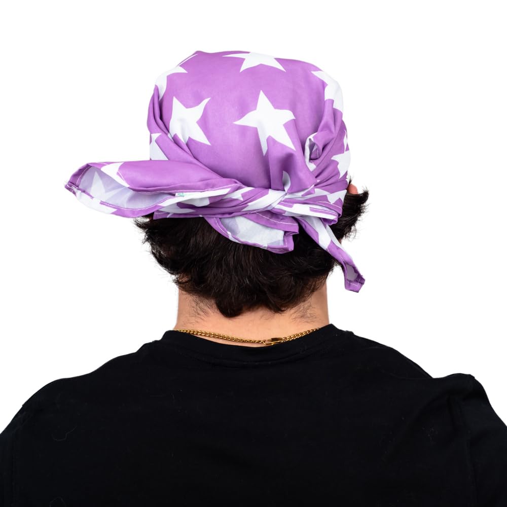 Macho Man wrestling cosplay costume bandana is available in four different colors: orange, pink, purple, and red; made from 100% polyester material; size: 22 inches by 22 inches open