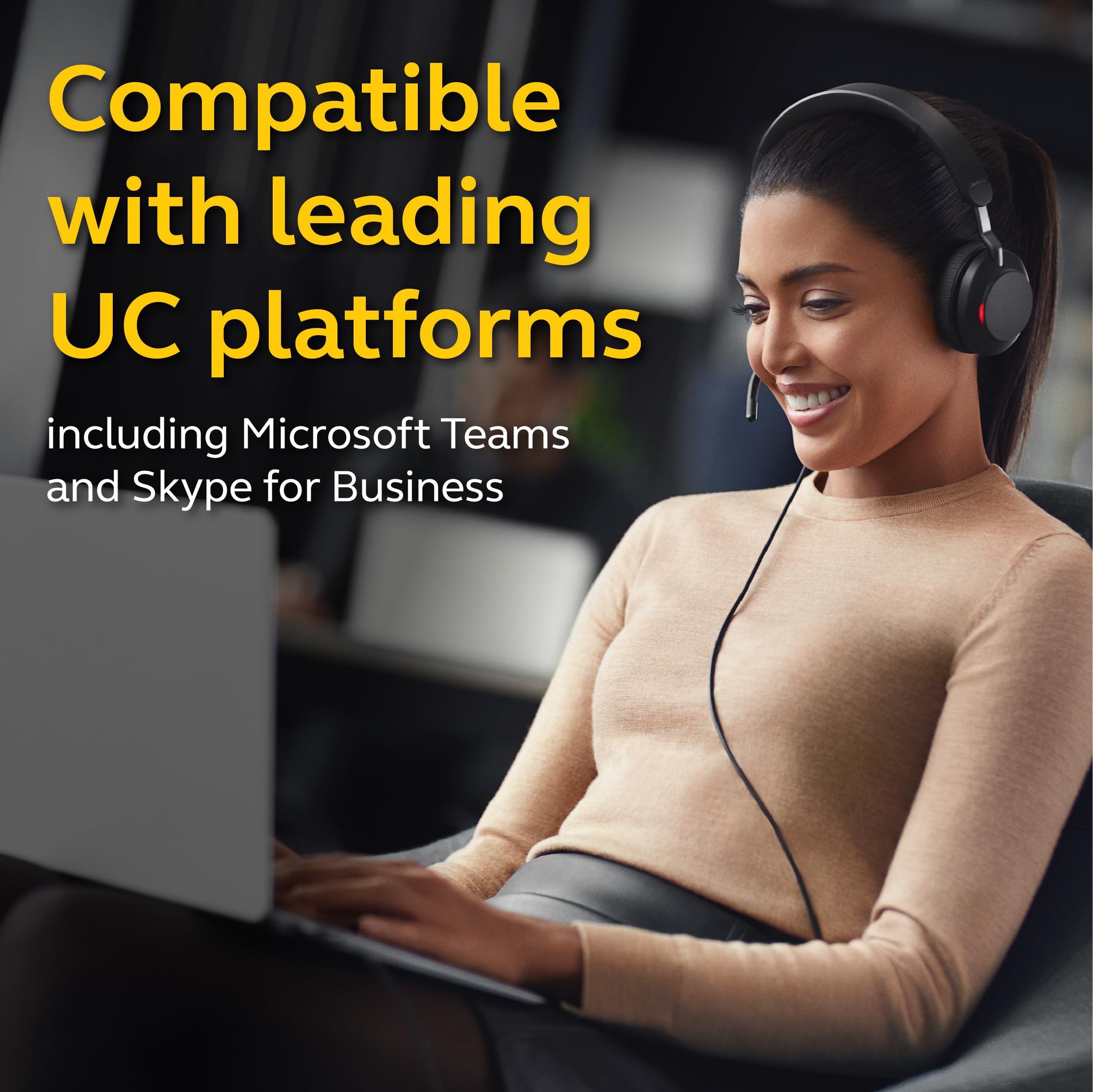 UC-CERTIFIED β This Jabra headset works with all leading Unified Communications platforms, including Microsoft Teams, Cisco, Mitel, Avaya & more for truly seamless collaboration; Features a USB-A connection