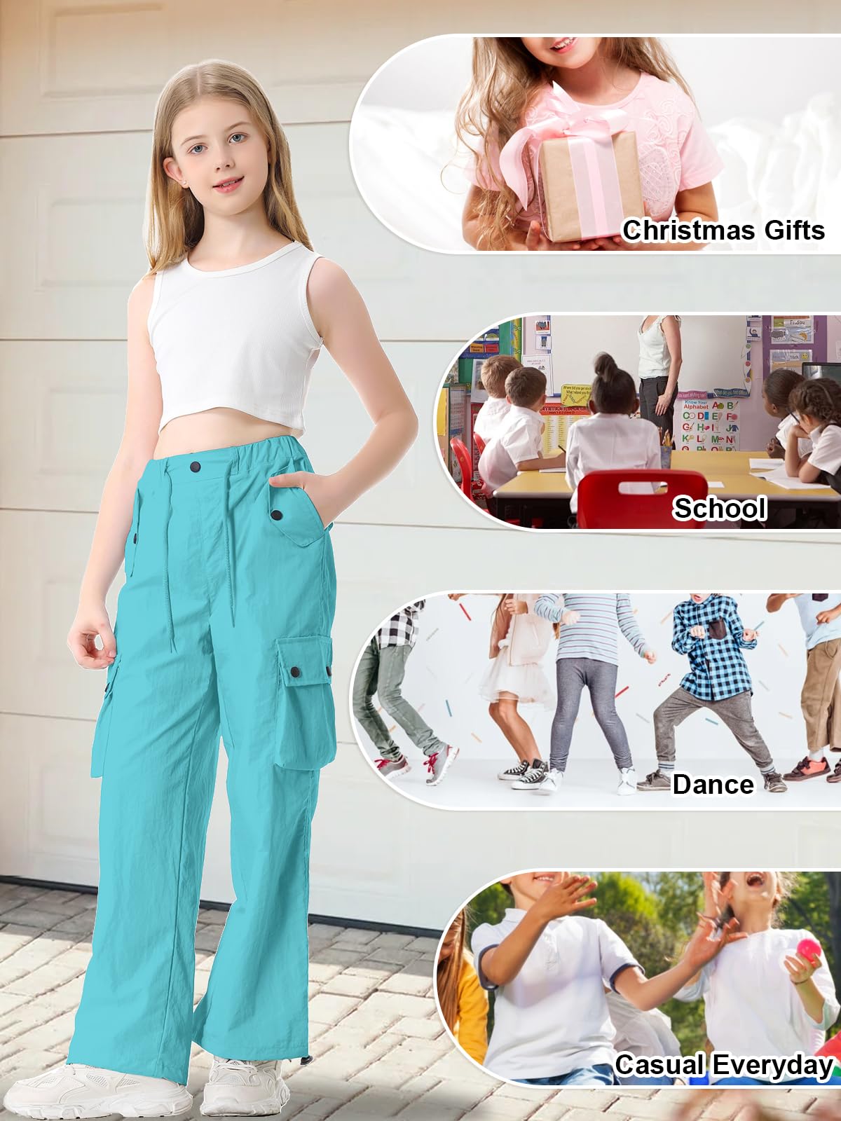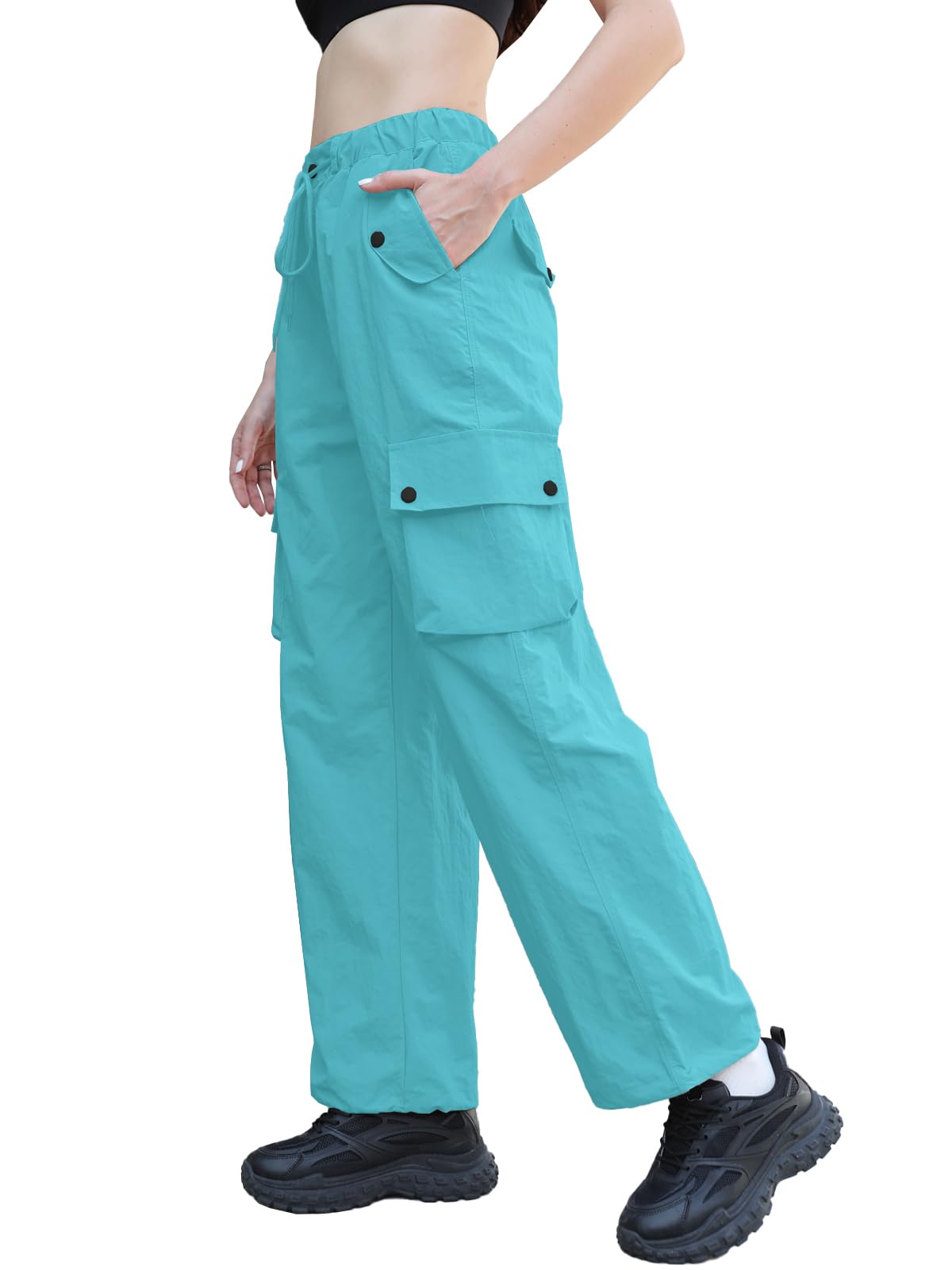 Material:Parachute pants designed for women and girls are crafted from lightweight, waterproof, and abrasion-resistant ripstop nylon fabric. Featuring a breathable design and an oversized silhouette, these pants incorporate essential Y2K aesthetics, expertly crafted to create a cool, edgy streetwear vibe.