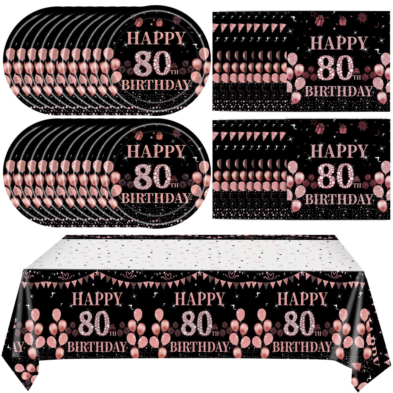 80th Birthday Banner and Tablecloth: The 80th Birthday Backdrop is printed by high-quality digital resolution for Black Rose Gold 80 year old women birthday party theme color. Four copper holes have been pre-made on birthday party banners, so you can easily hang it anywhere. Rose gold tablecloth made of quality waterproof and tear plastic, helpful to clean up fast and easy after birthday party. Large size 108 x 54inches suit for rectangular tables, can be applied indoors and outdoors