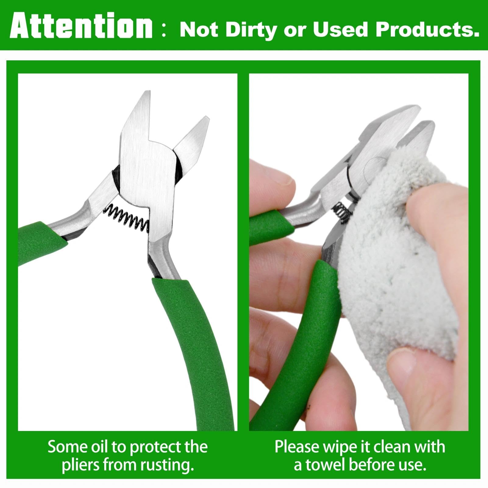 【ANTI-RUST OIL】 The anti-rust oil may be appeared on the pliers, it can protect the pliers from rusting. It's not dirty or used products, you can clean it with a towel and it will not effect the function.
