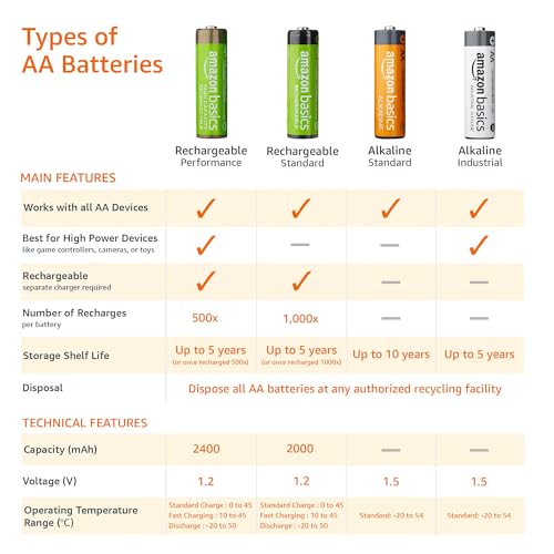 Product Description An Amazon Brand. Amazon Basics 8-Pack AA Rechargeable Batteries, Recharge up to 1000x, Standard Capacity 2000 mAh, Pre-Charged From the Manufacturer Amazon Basics