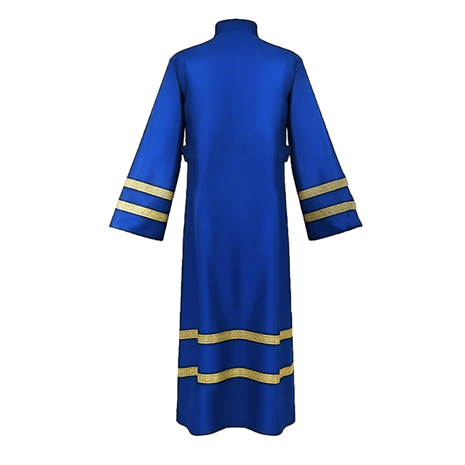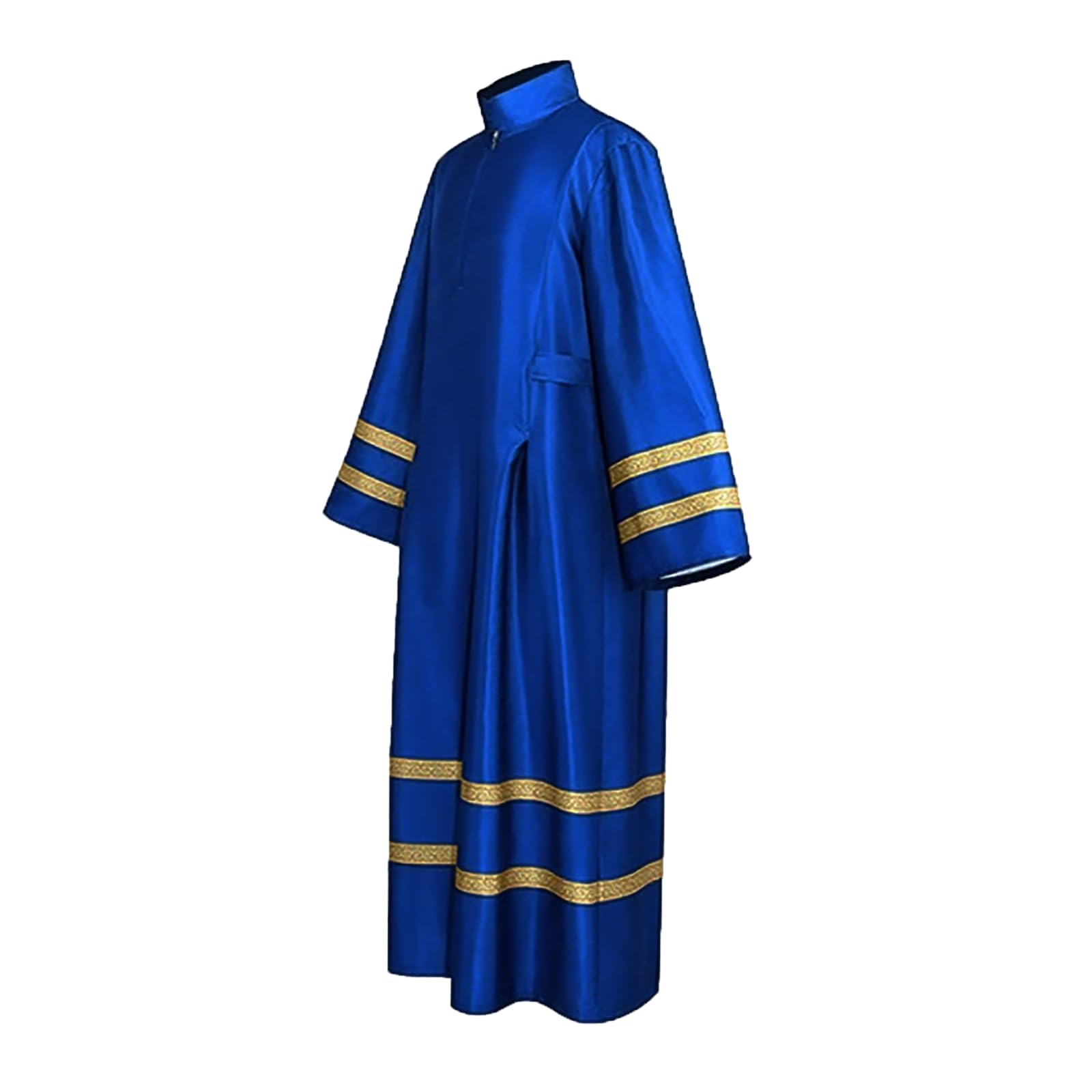 Description Discover our men's elegant clergy robes, tailored for those who value sophistication and functionality. These robes are the perfect blend of style and comfort, making them ideal for church services and choir performances. The fabric, complemented by golden print on the sleeves and hems, adds a touch of elegance to any religious or formal occasion. Crafted from high-quality material, these robes ensure durability and comfort, even during extended wear. Versatile and practical, our clergy robes are easy to care for, with machine washability ensuring they remain in pristine condition for years to come. Whether you're a clergy member, choir member, or attending a formal event, these robes are a must-have addition to your wardrobe.