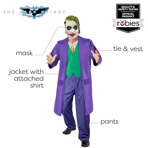 OFFICIALLY LICENSED: DC Batman The Dark Knight The Joker THE RIGHT FIT: Men's size xl (44-46in jacket), when deciding size, please note costumes run smaller than apparel. Please refer to drop down size chart