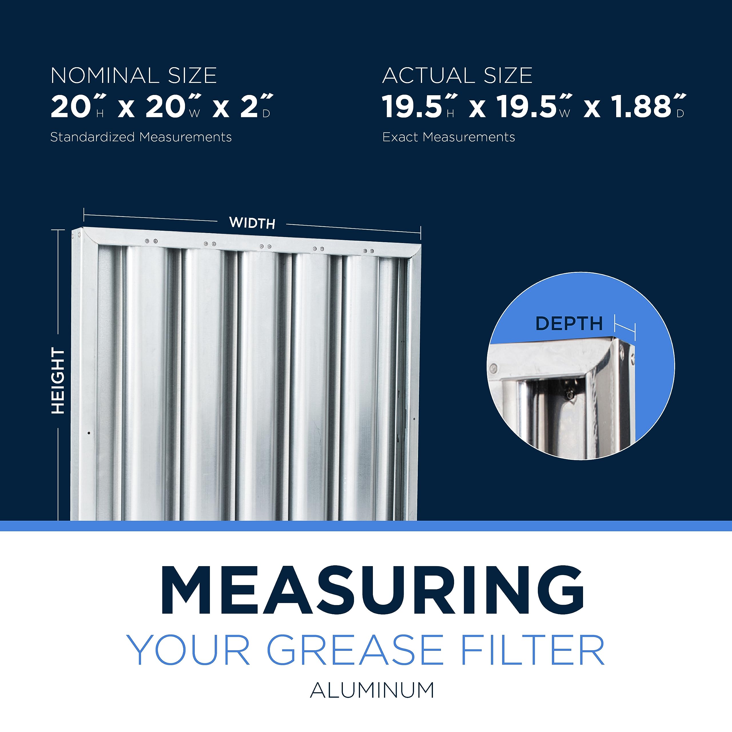 94% AVERAGE GREASE REMOVAL EFFICENCY (tested at 300 FPM), this aluminum filter holds up to daily flame cooking, grilling, and frying