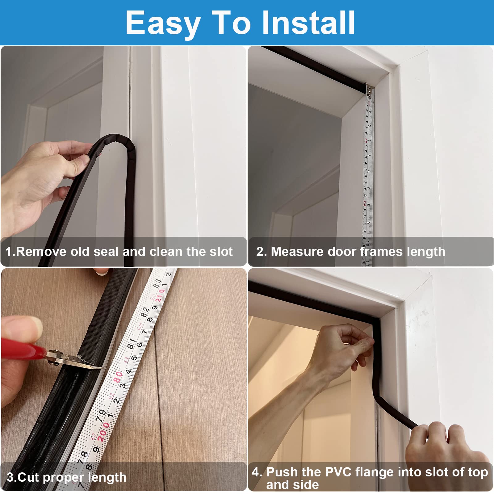 Easy Installation: No adhesive needed—simply measure the gap, cut the weather stripping to the required length, and insert the white plastic flange into the groove for a secure fit