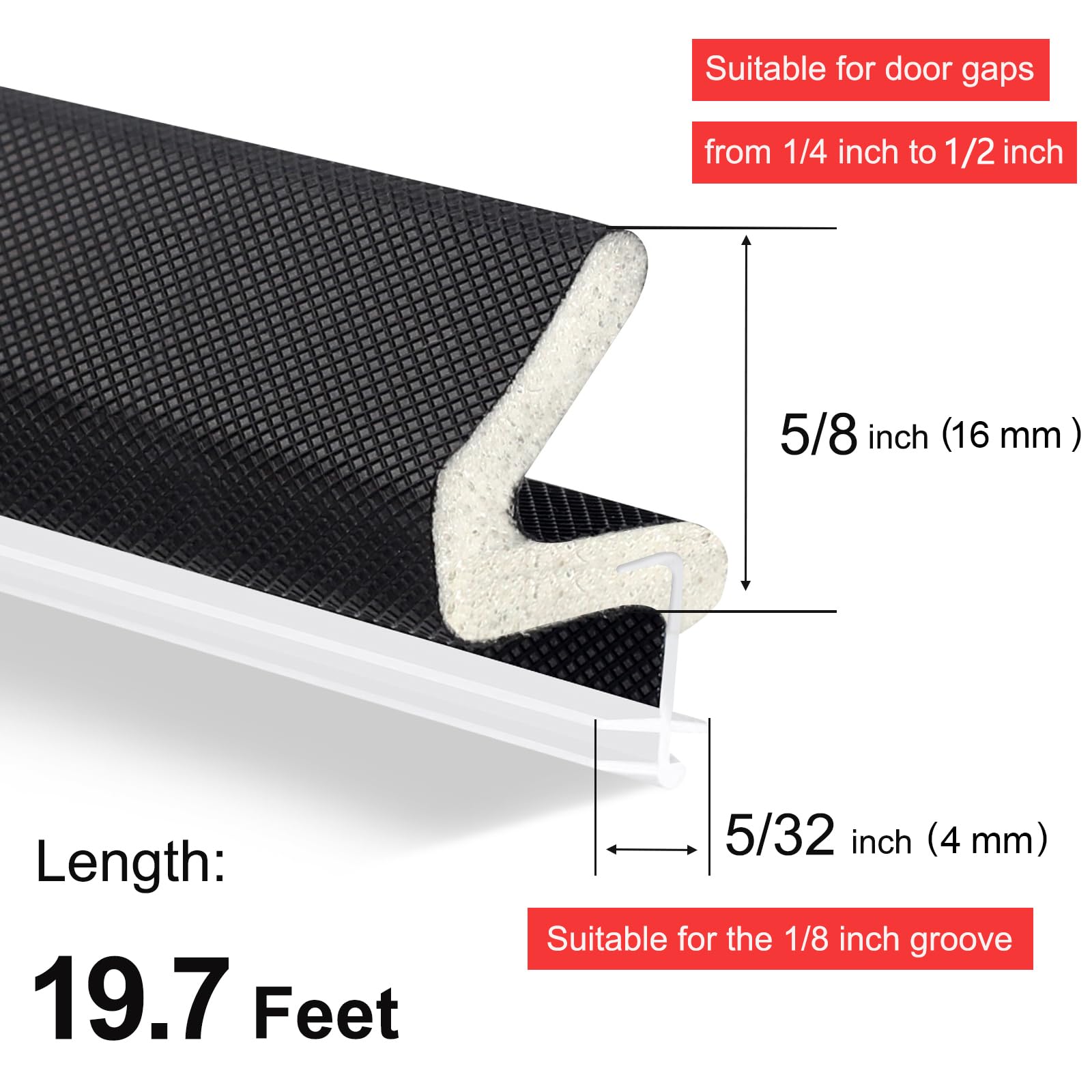 DIY Kerf Weatherstrip: 1 roll, 19.7 ft/236 inches long, suitable for door gaps from 1/4 inch to 1/2 inch (7mm to 13mm). Please measure the groove size before ordering