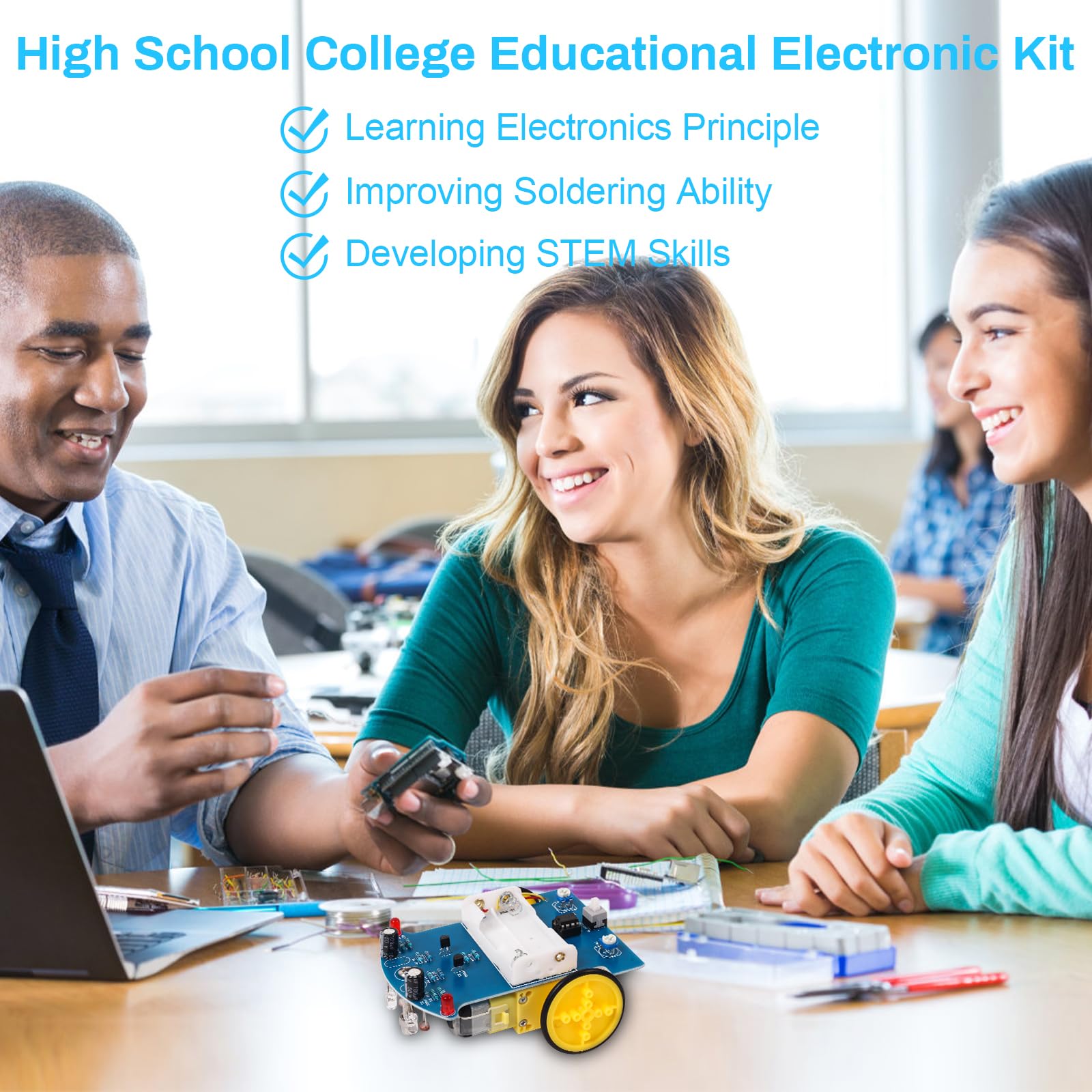 ✔【Easy Soldering】: This smart car solder practice kit is easy to build and the principle is simple. The connection that was clearly mapped and labeled on the PCB board. It's much easier to assemble which is great for students, teenagers, beginners and DIY hobbyists.